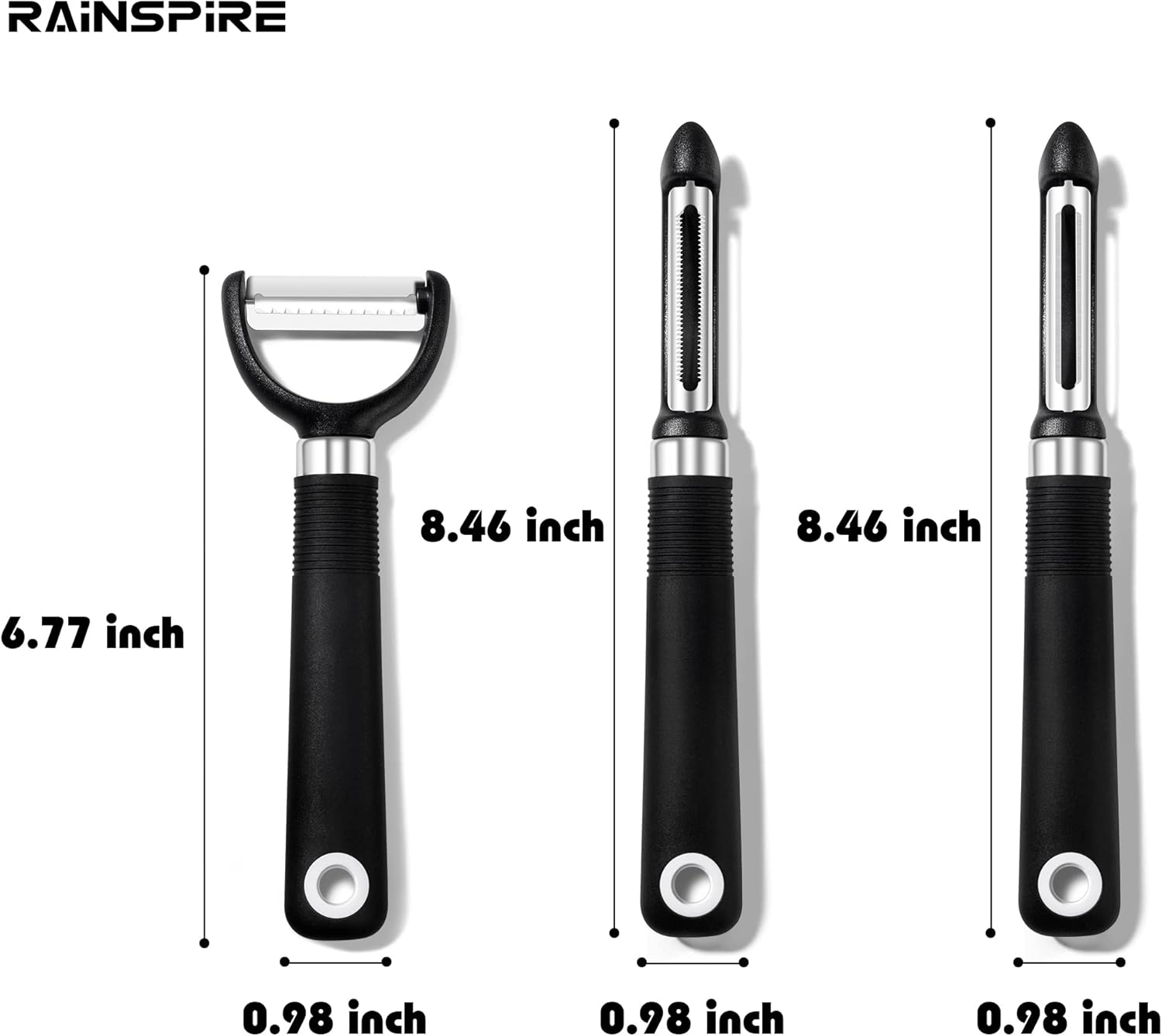 Rainspire 3-Piece Peeler Set, Premium Swivel Vegetable Peeler, Kitchen Gadgets Apple Peeler Potato Peeler Veggie Peeler Fruit Peeler, Dishwasher Safe Kitchen Accessories, Black
