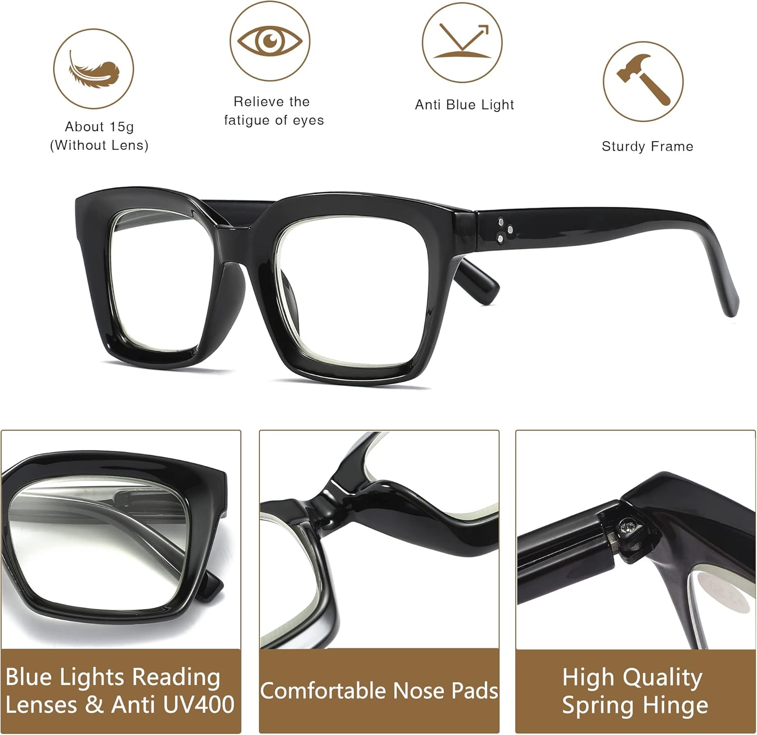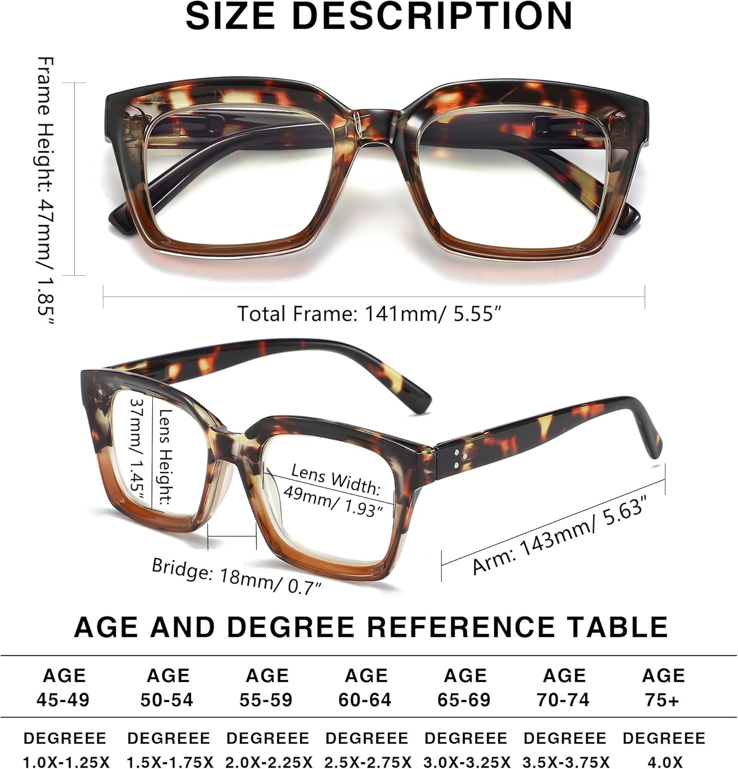 Readers for Women Oprah Style Square Reading Glasses with Spring Hinge Blue Light Blocking for Men Ladies