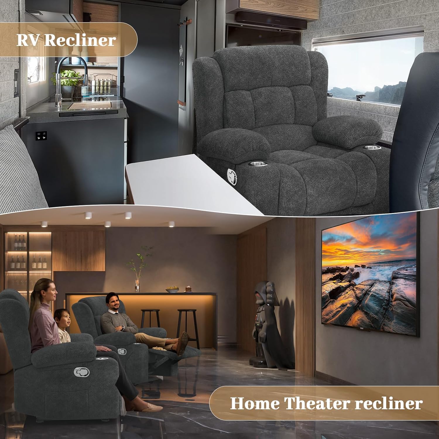 Recliner Chair for Adults, Oversized Fabric Manual Pull Tab Reclining Chair with Cup Holders, Minimalist Style Single Sofa for Living Room, RV (Grey)