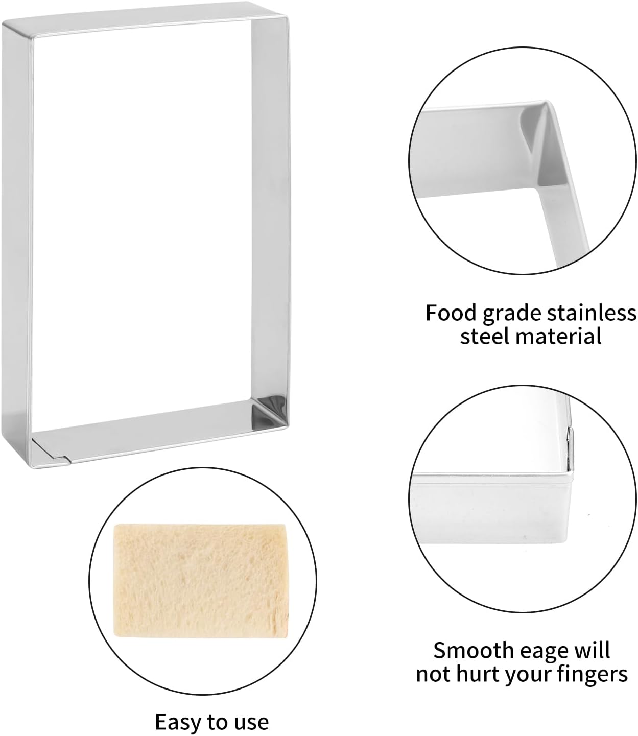 FOUR SIZES: 4 different sizes of rectangle cookie cutters, 1.2*2 inch, 1.9*3inch, 2.4*4 inch, 3.2*5 inch.The depths are 1 inch.