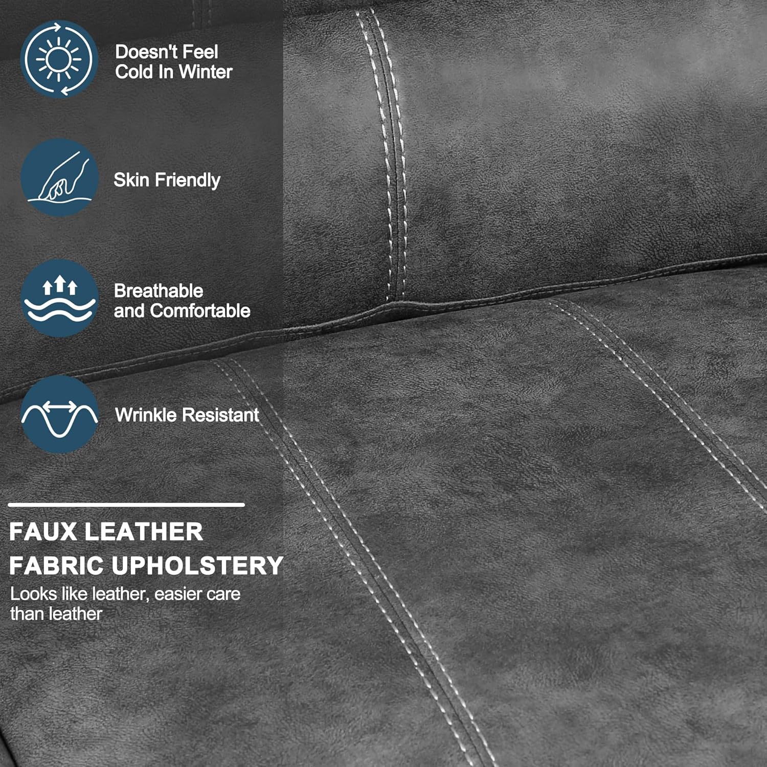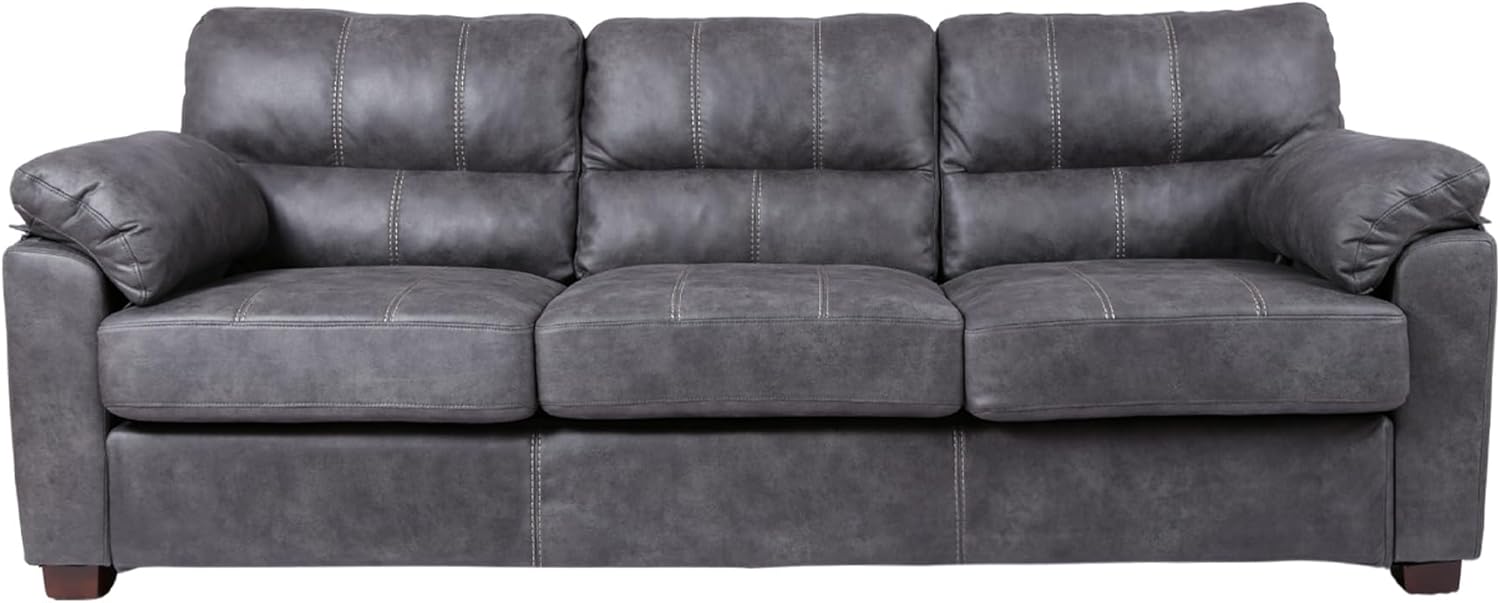 Premium Faux Leather: Crafted with padded dark grey faux leather couch upholstery featuring a weathered hue and pebbly texture, this sofa leather offers the cool look of leather sofas with the cozy feel of fabric