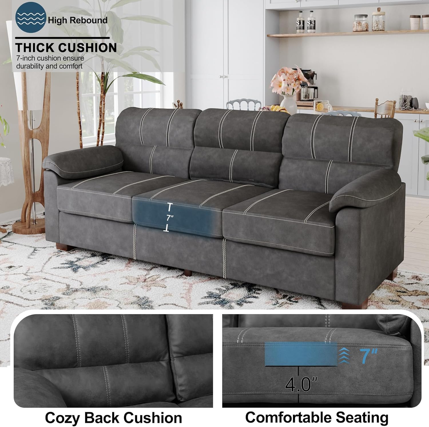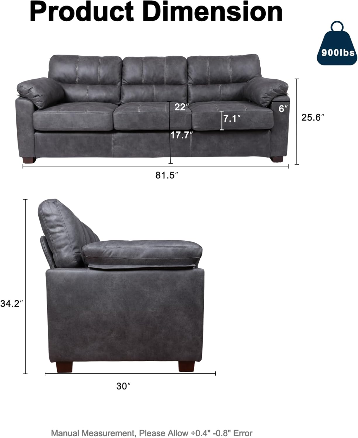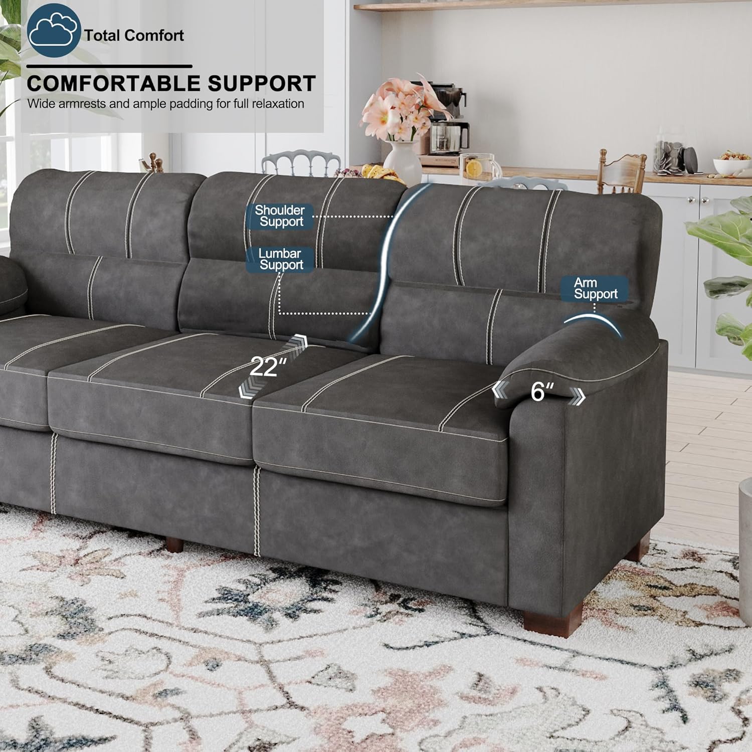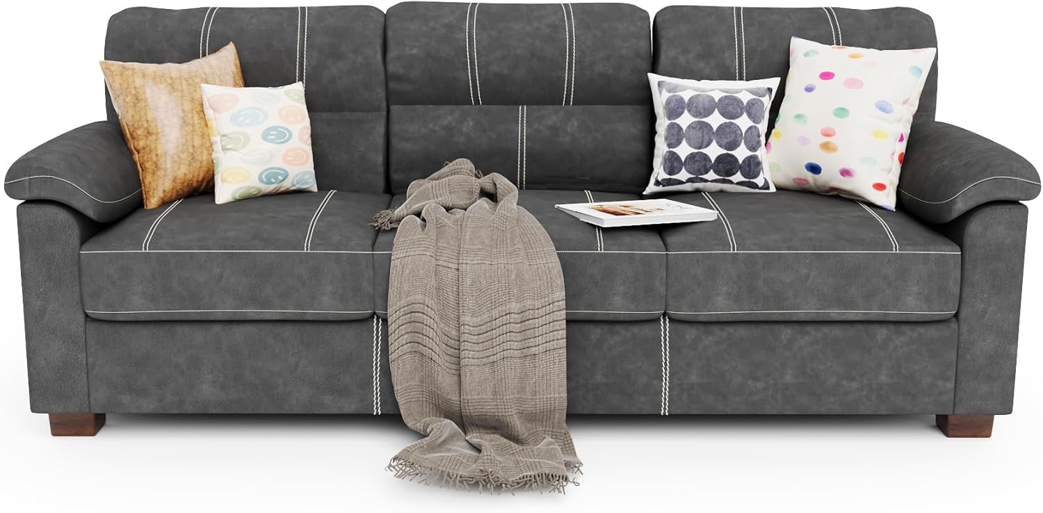Sturdy Construction: Designed with a hardwood frame, strong wood legs, and no-sag spring packs, this dark grey sofas for living room choice supports up to 900 lbs for long-lasting use
