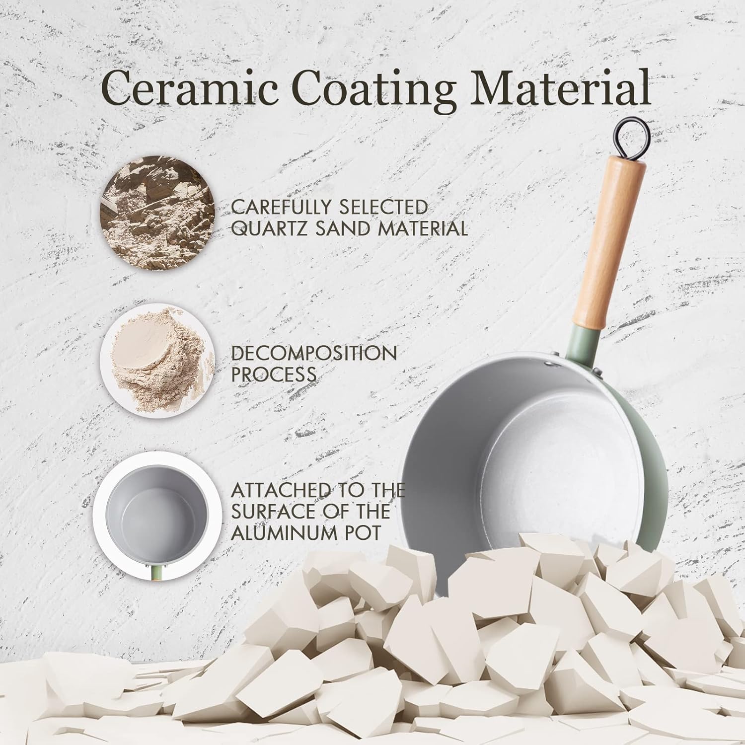 Utensil Safe: Ceramic small cooking pot is without PFAS, PFOA, LEAD, and cadmium, ensuring your peace of mind while cooking; Healthy sauce pan with steamer made from good quality cast aluminum, induction saucepan for cooking is incredibly sturdy and long- lasting, lasting 5 times longer than regular small milk pots