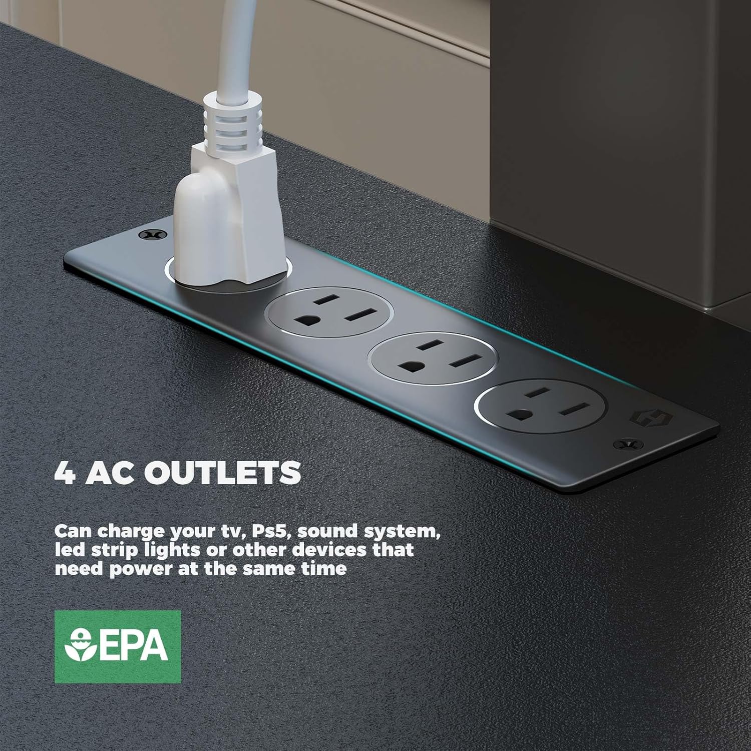 TV Stand with Charging Station and Wire Management: This entertainment center with power outlets built-in 4 standard plug outlets, so it can meet the needs of different equipment, which is convenient to charge your TV, DVD, WiFi router, and etc. The TV mount offer wire management to keep your cords from getting tangled and make it easy to plug in all of your devices