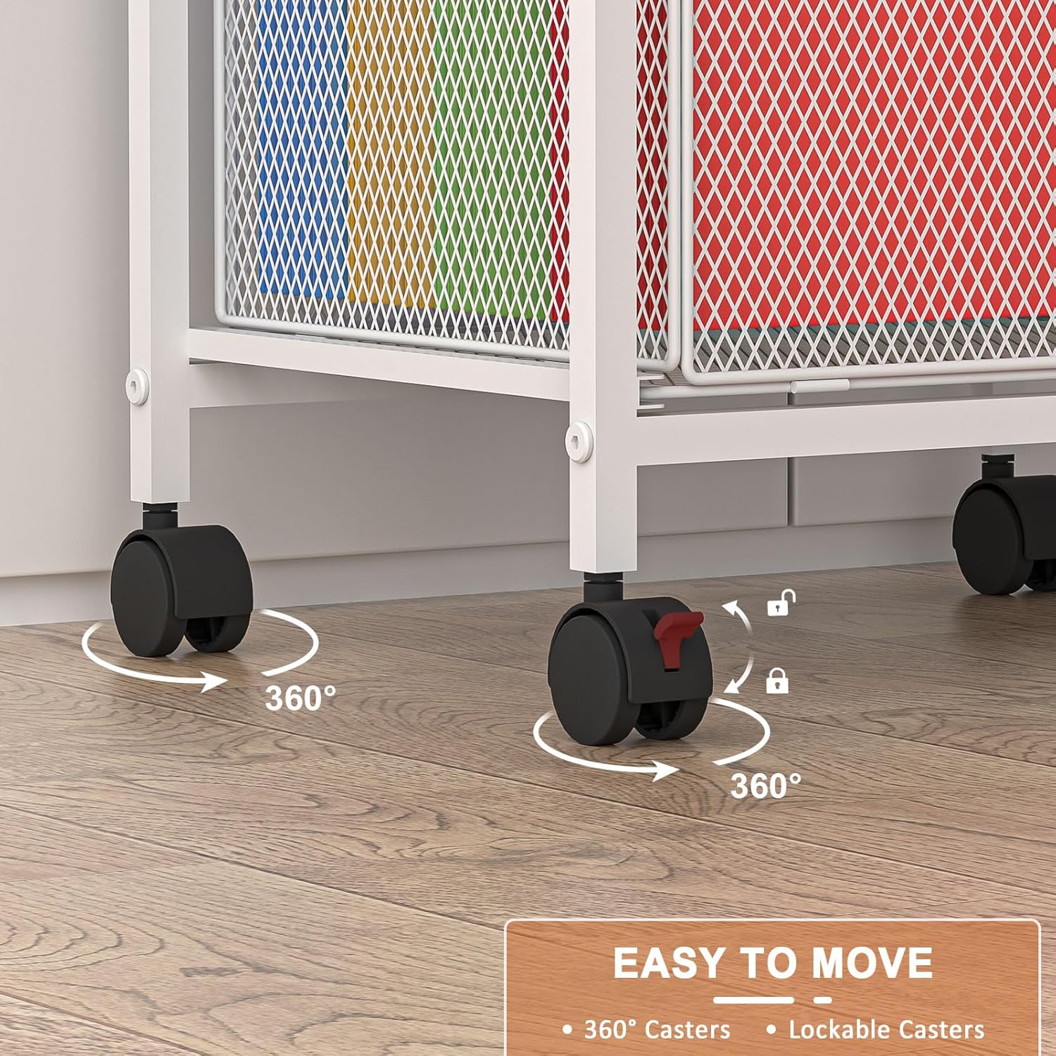 【Easy to Move】The Rolling Filing Cabinet come with 4 Wheels, it can fix or move around your home office freely. Built-in brakes on 2 casters to keep the filing cabinet in position and add stability.