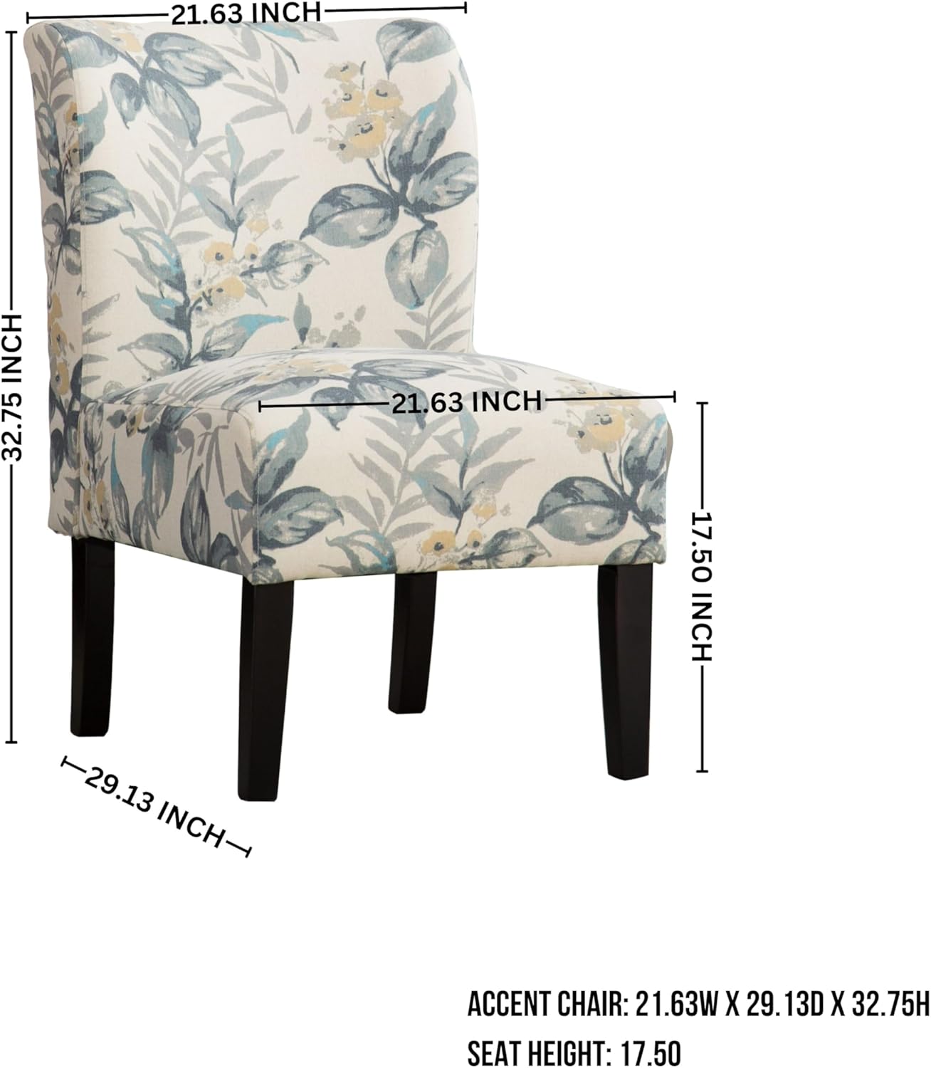 [SET UP DIMENSIONS]: 21.63W x 29.13D x 32.75H; Seat: 21.63W x 21D x 17.50H inch.