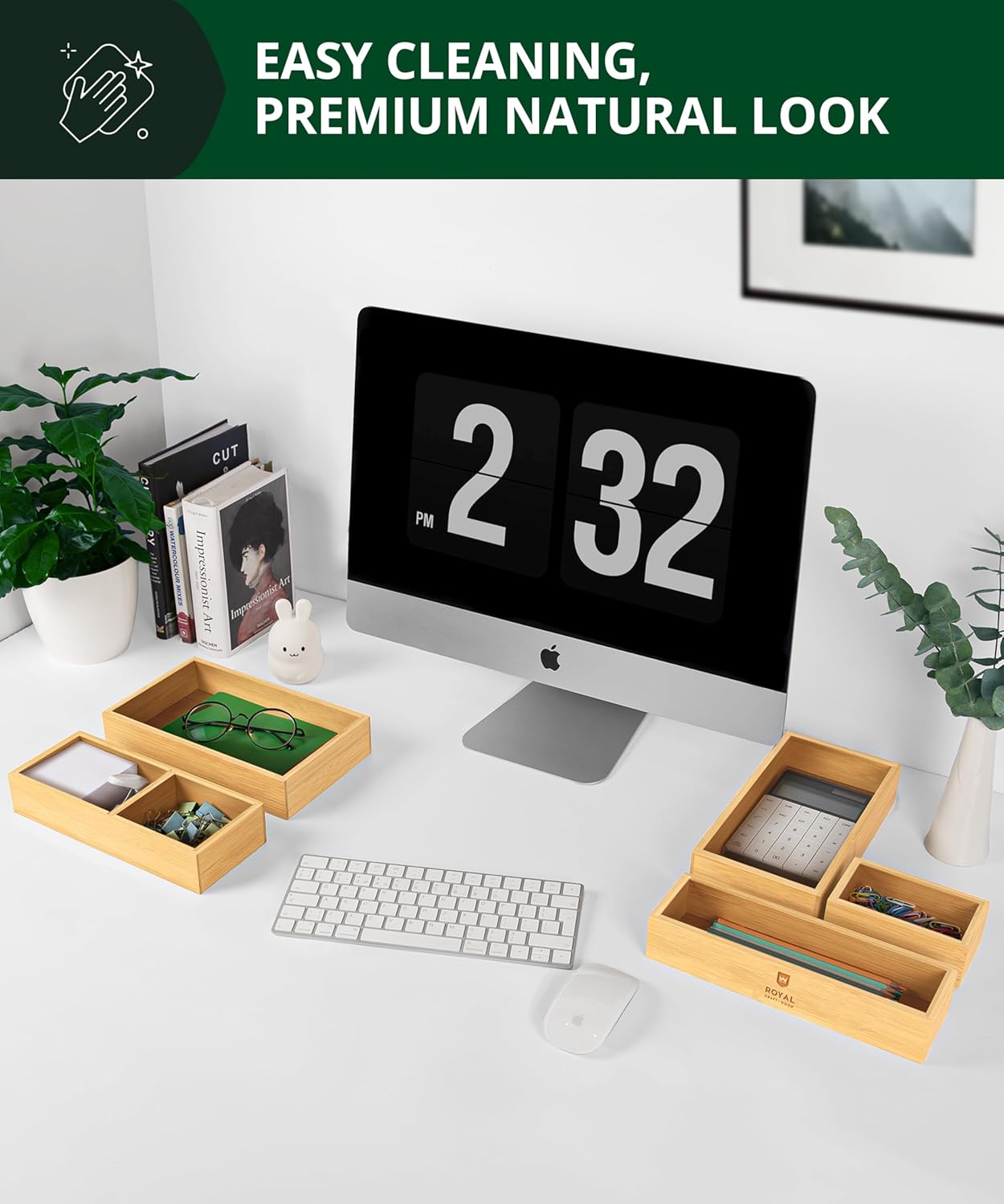 ROYAL CRAFT WOOD 5-Piece Bamboo Drawer Organizer Set – Multi-Use Storage Trays for Kitchen, Bathroom, Office, Makeup, Jewelry & More – Junk Drawer Tray, Utensil Holder, Storage Box & Bin Set (5 Boxes)