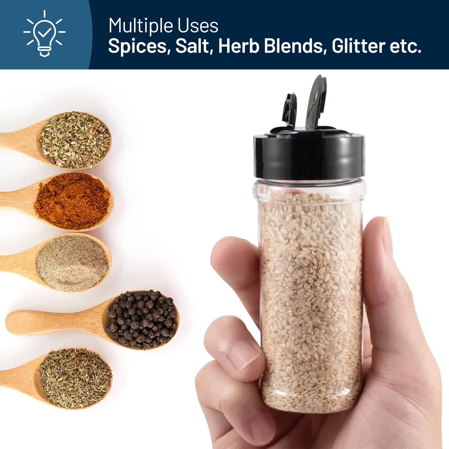 Multi-Purpose: Our clear plastic jars are perfect for storing dried spices, salt, peppers, seasonings, herb blends, powder, glitter, bath salts, crafts, etc.