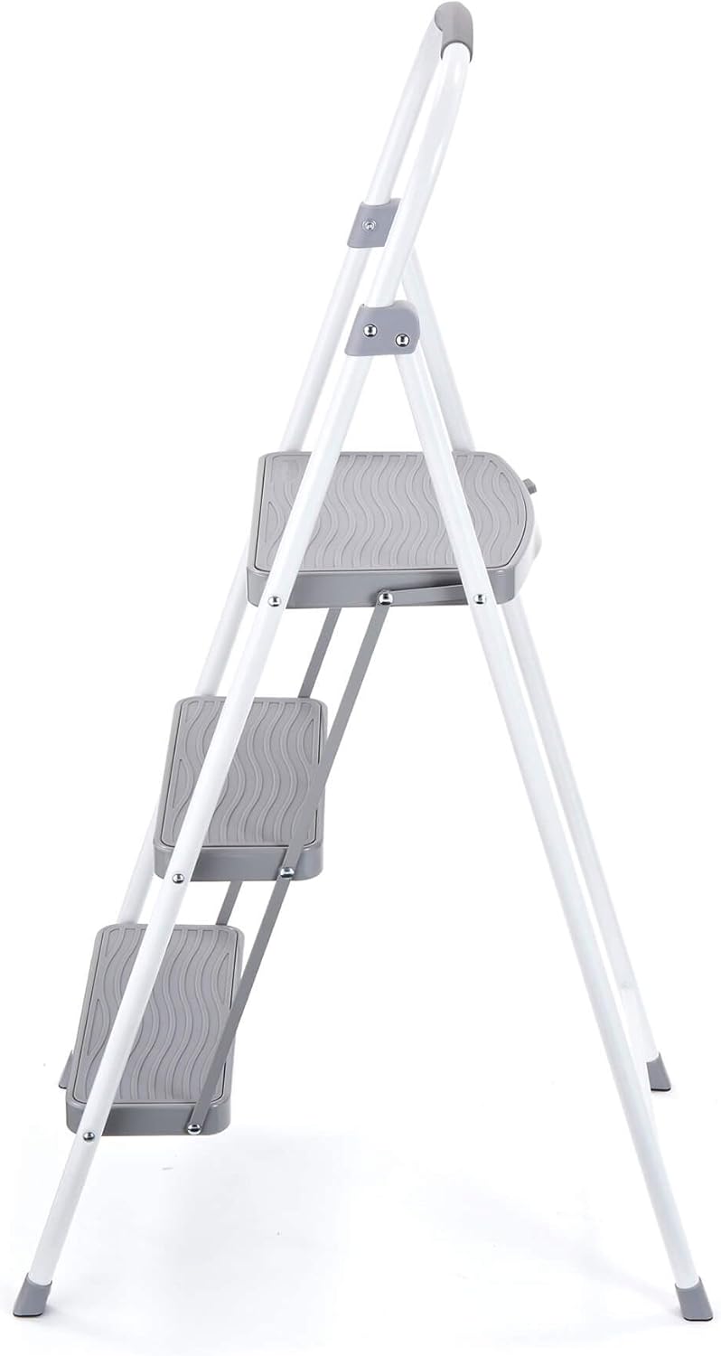 Unfold, Reach, Fold, Repeat: With a top step height of 28 inches, conquering heights becomes a breeze; When the task is done, fold it up effortlessly, slim as a secret, grip handle in tow, ready to be tucked away in the hidden corners of your abode