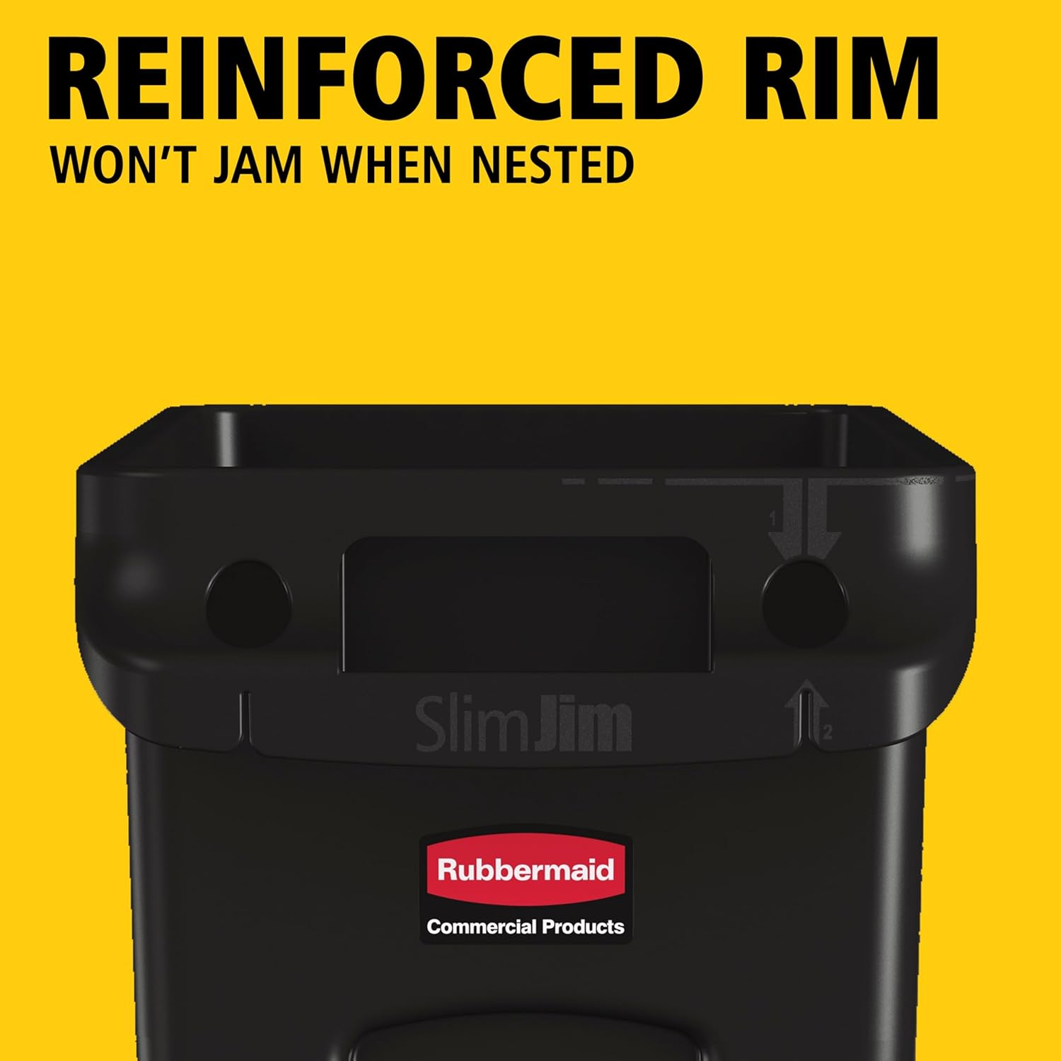 STRUCTURAL RIBBING: Rib-strengthened rim resists crushing while the step design prevents jamming when nested.