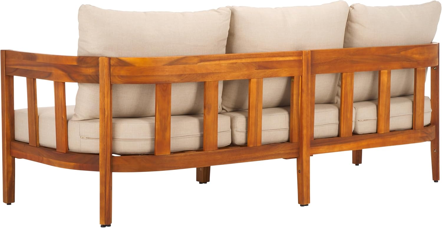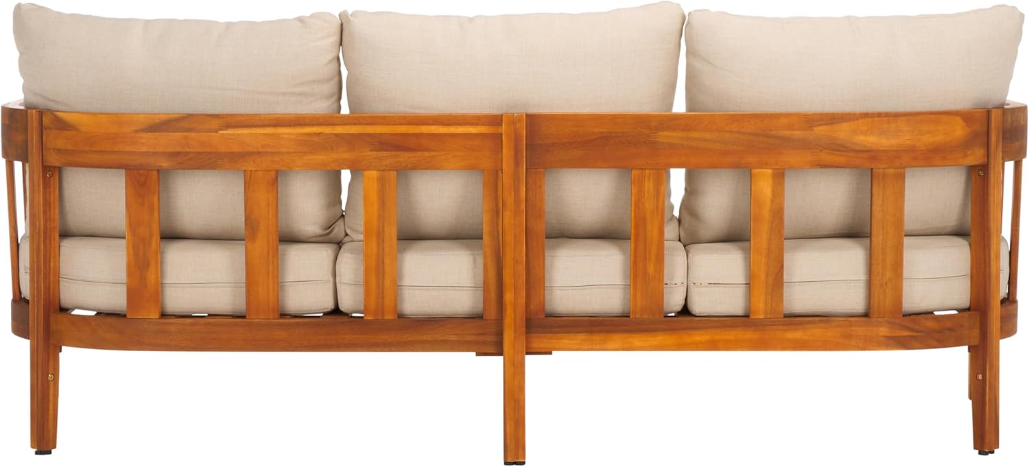 SAFAVIEH Outdoor Collection Owen Natural Teak Solid Wood/Taupe Cushion 3-Seater Sofa