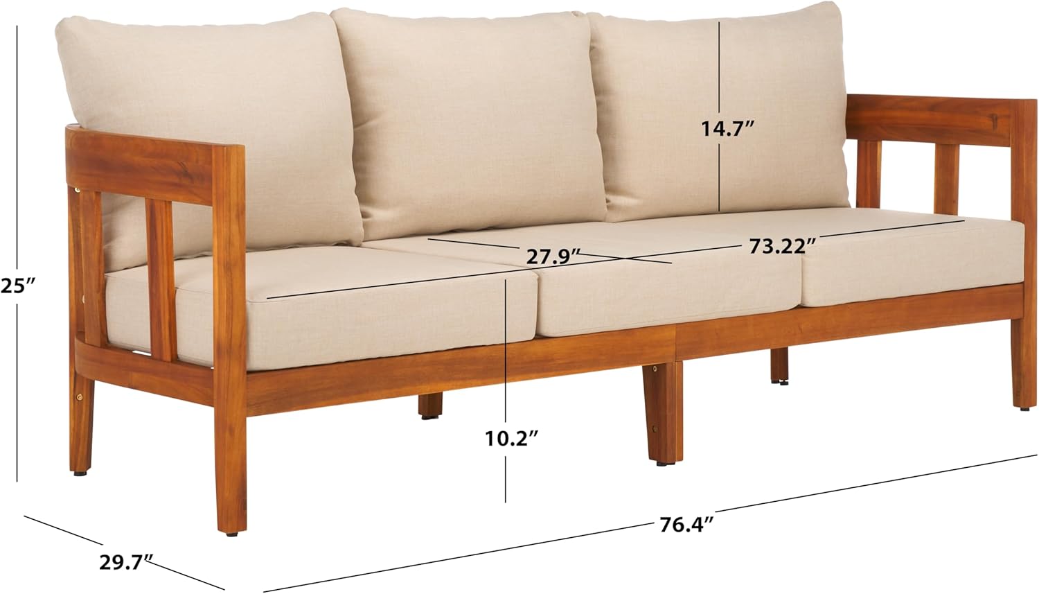 [PERFECT SIZE FOR ANY OUTDOOR SPACE]: 76.4″ wide x 29.7″ deep x 25″ high with a 10.2″ seat height