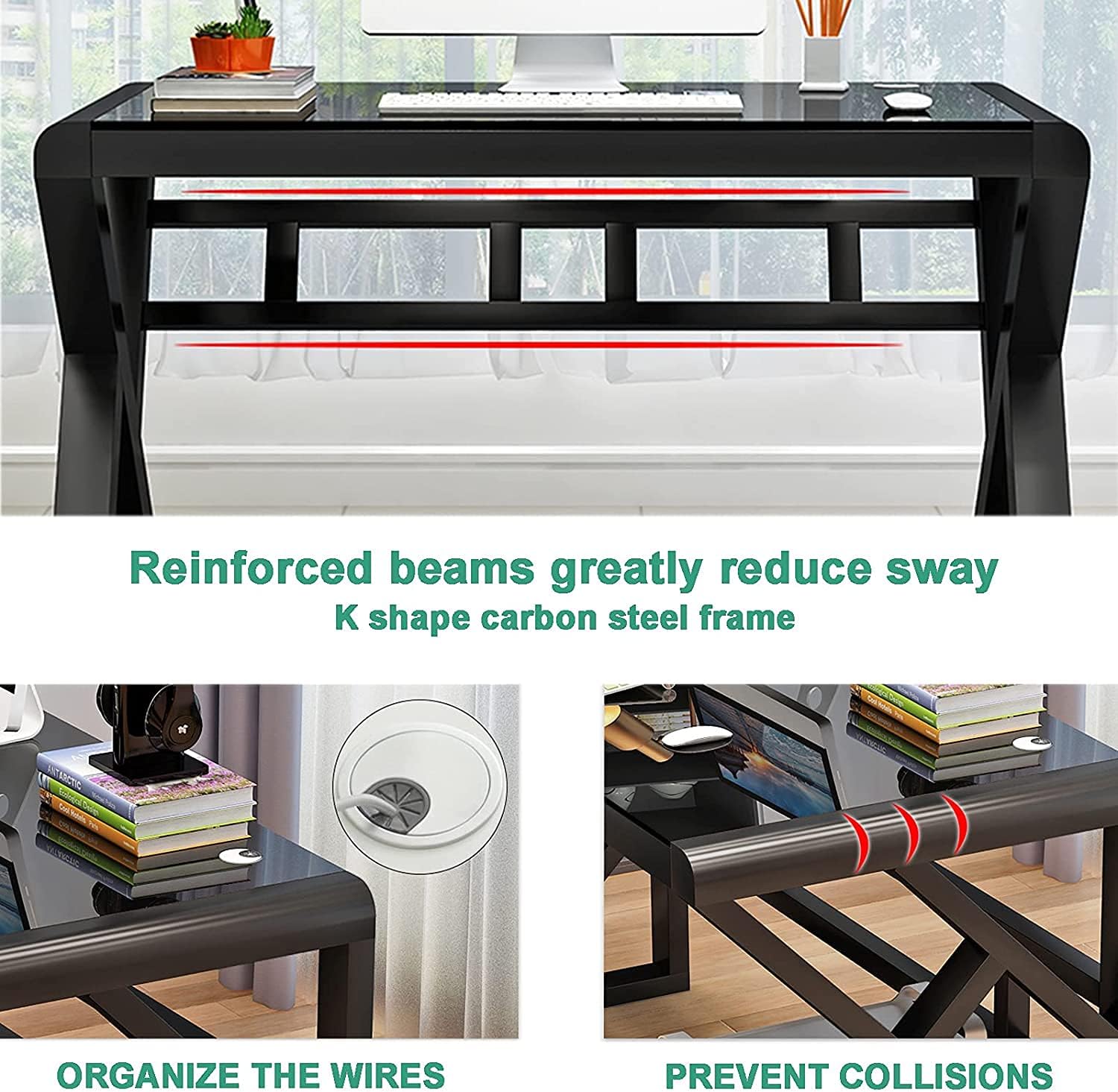 Versatile Office Desk: Features a built-in wire hole for a tidy workspace. Includes 4 non-slip gaskets to protect floors and 12 stickers for a secure glass-to-metal connection, ensuring stability on any surface