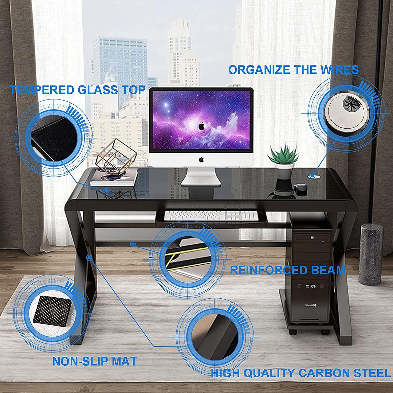 Tempered Glass Computer Desk: Crafted from tempered glass, this desk is scratch-resistant, anti-collision, and waterproof, ensuring durability. Its elegant design adds a touch of luxury to any room, making it a perfect addition to your home office