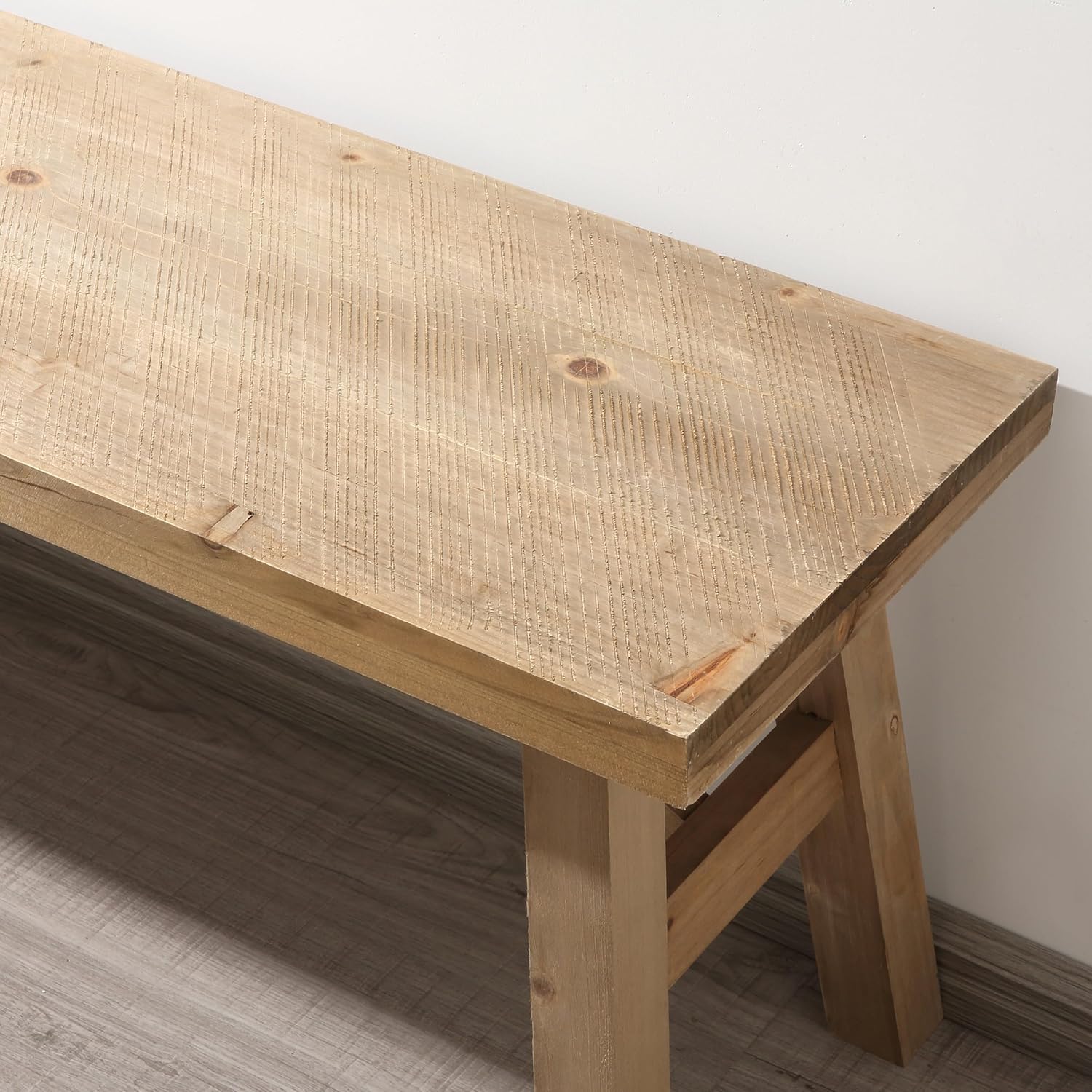 Sawmill Long Wood Bench, 43″ Farmhouse Entryway Bench for Living Dining Room, Rustic Entry Way Benches Seat, Solid Wood, Handcraft Finshed, Natural