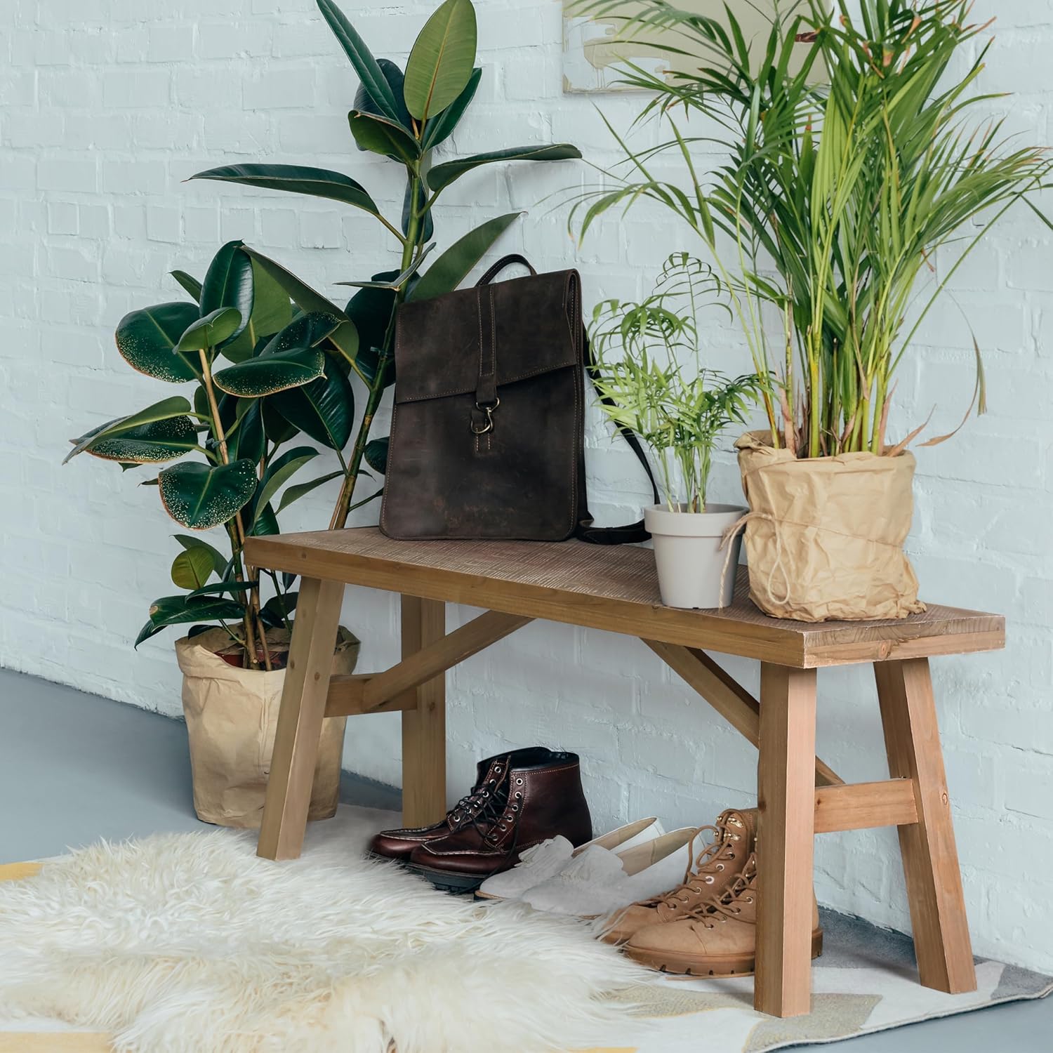 【Solid Wood】The entry bench is handcrafted of solid wood which are thick and durable enough to strongly support the end itself and stuff on it. And the handcrafted finish is not only durable for long service time, natural, making it more safer