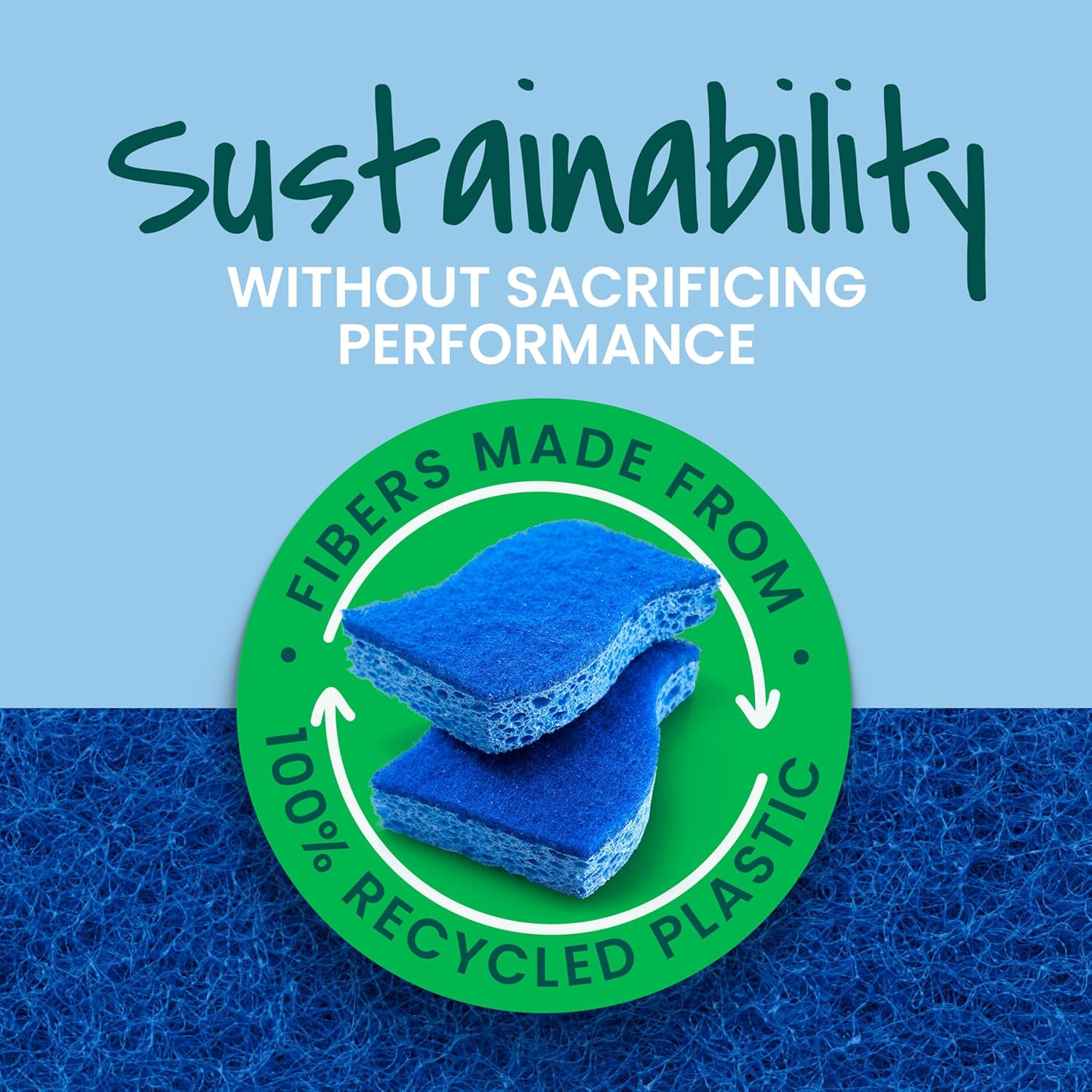 MADE FROM RECYCLED CONTENT: The scrubbing fibers are made from 100% recycled plastic for a sustainable clean.