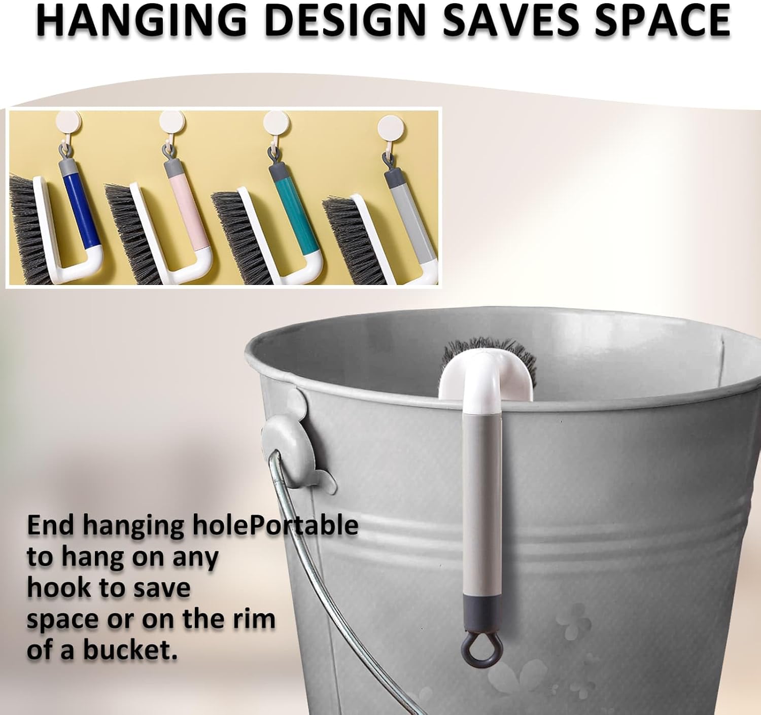 【CONVENIENT TO STORE WITH THE U-SHAPED HANDLE】U-shaped handle for easy storage. You can hang the brush on the side of the barrel or on the crossbar, or choose to hang it up.
