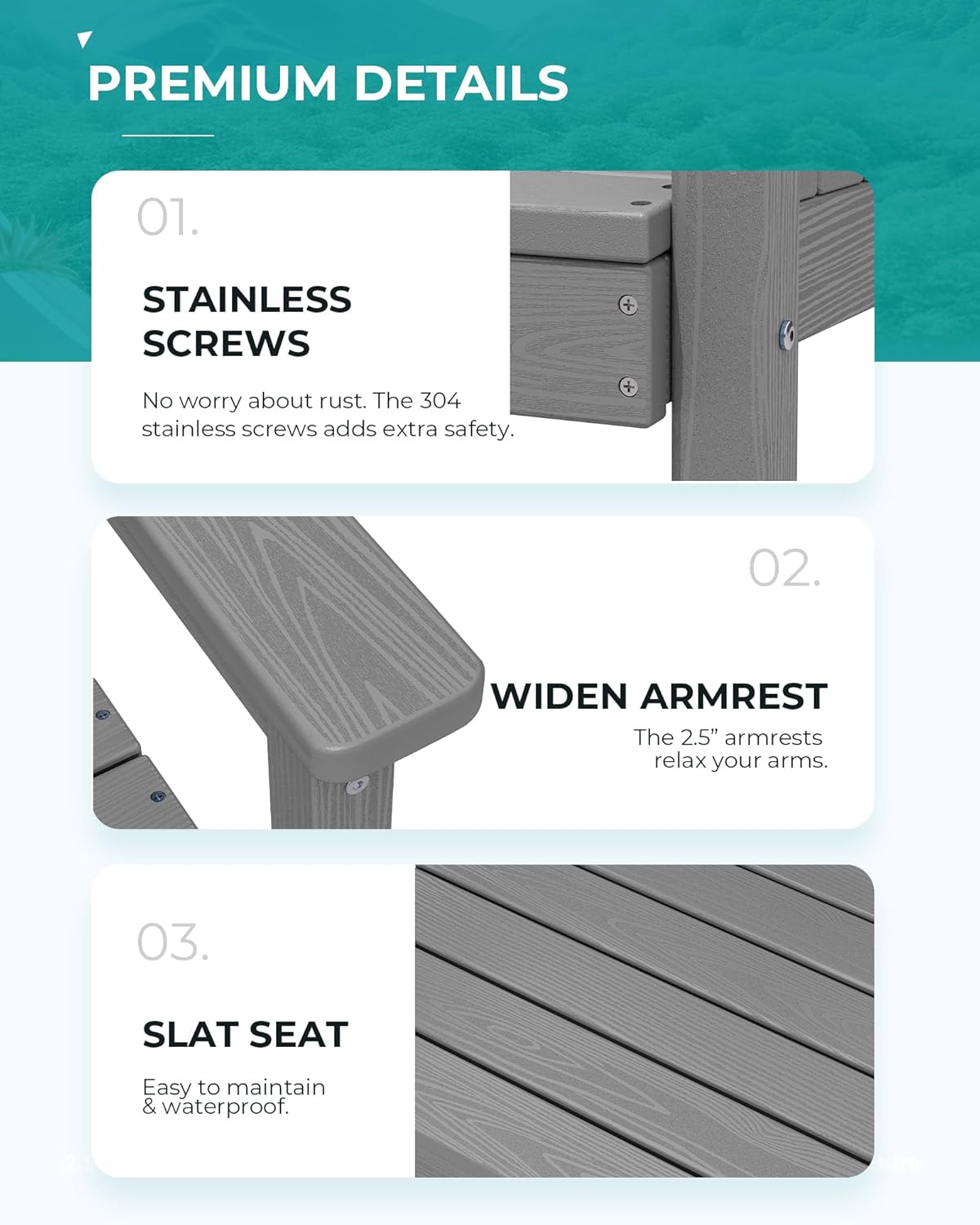 【Low Maintenance】HDPE dining table sets required low maintenance. Unlike the Steel dining sets may require rust prevention, SERWALL patio dining table and chairs are easy to clean with just soap and water, requiring minimal effort to keep them looking fresh.