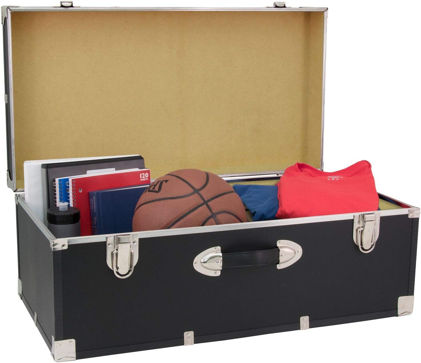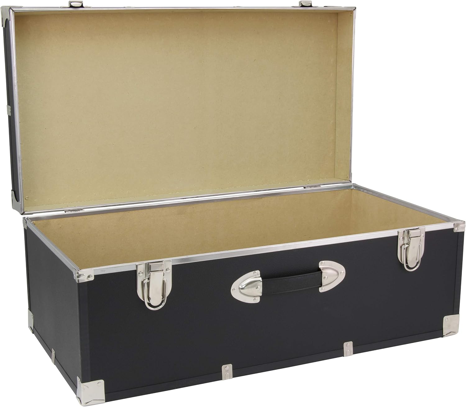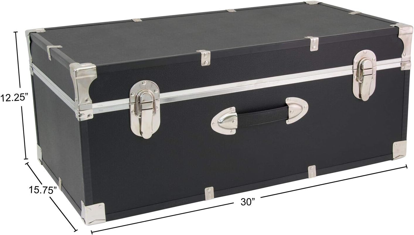 The Seward Basic 30″ Trunk is a durable storage for any room in your home. Easily stow away infrequently used items such as bulky linens and seasonal clothing. This trunk features classic nickel hardware with black binding and nickel corner guards. Dual lock-down latches help keep dust and moisture out. Basic Collection trunks feature one front handle for easy moving.