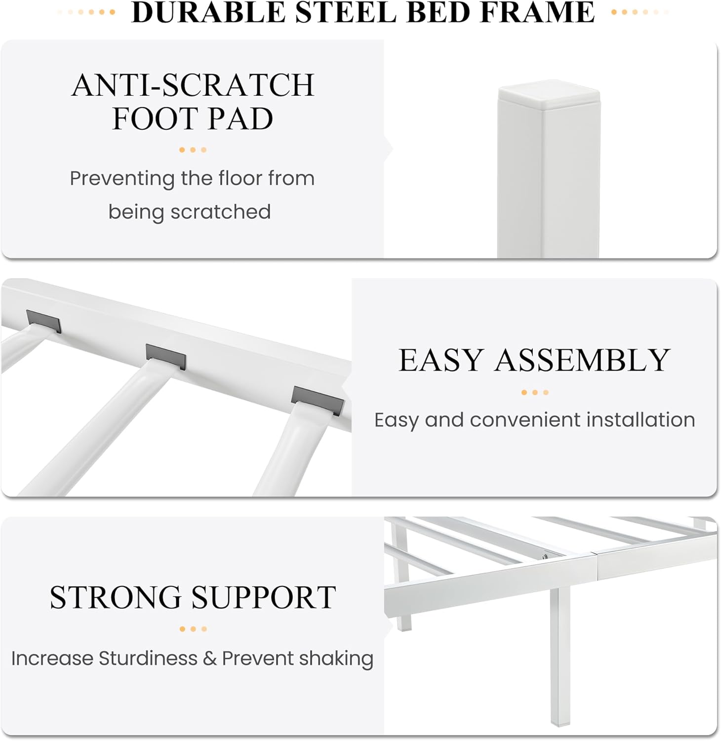 HEAVY DUTY METAL BED FRAME: This sturdy twin metal platform bed frame is made of high-guality steel andrequires no box spring. Simply place your mattress directly on top for a worry-free and comfortable sleep