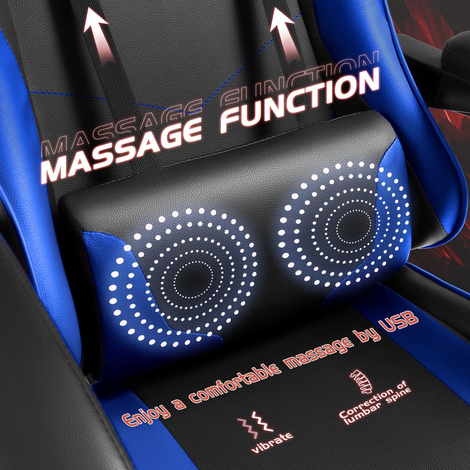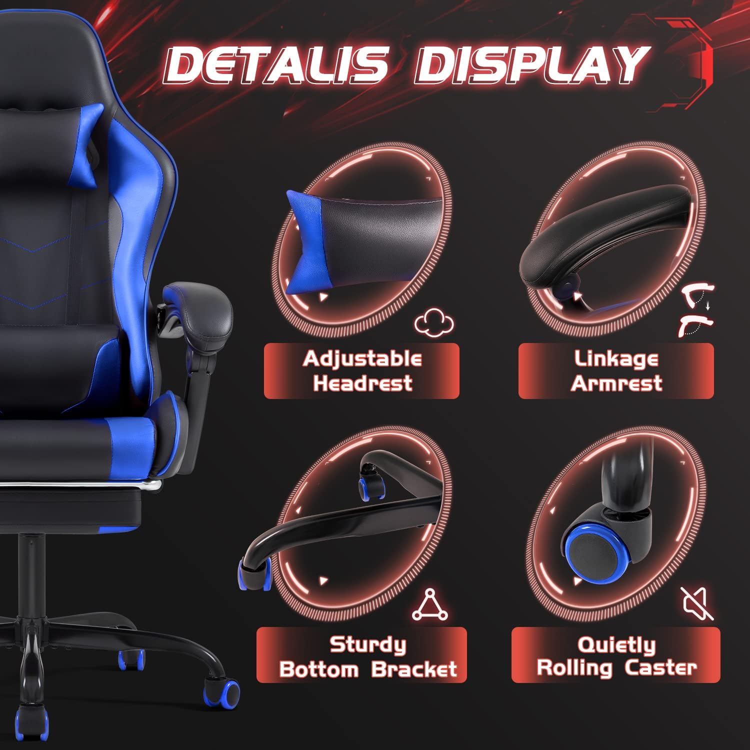 Shahoo Gaming Chair with Footrest and Massage Lumbar Support, Video Game Chairs Height Adjustable Seat with Headrest for Office or Bedroom, Study Room, Blue