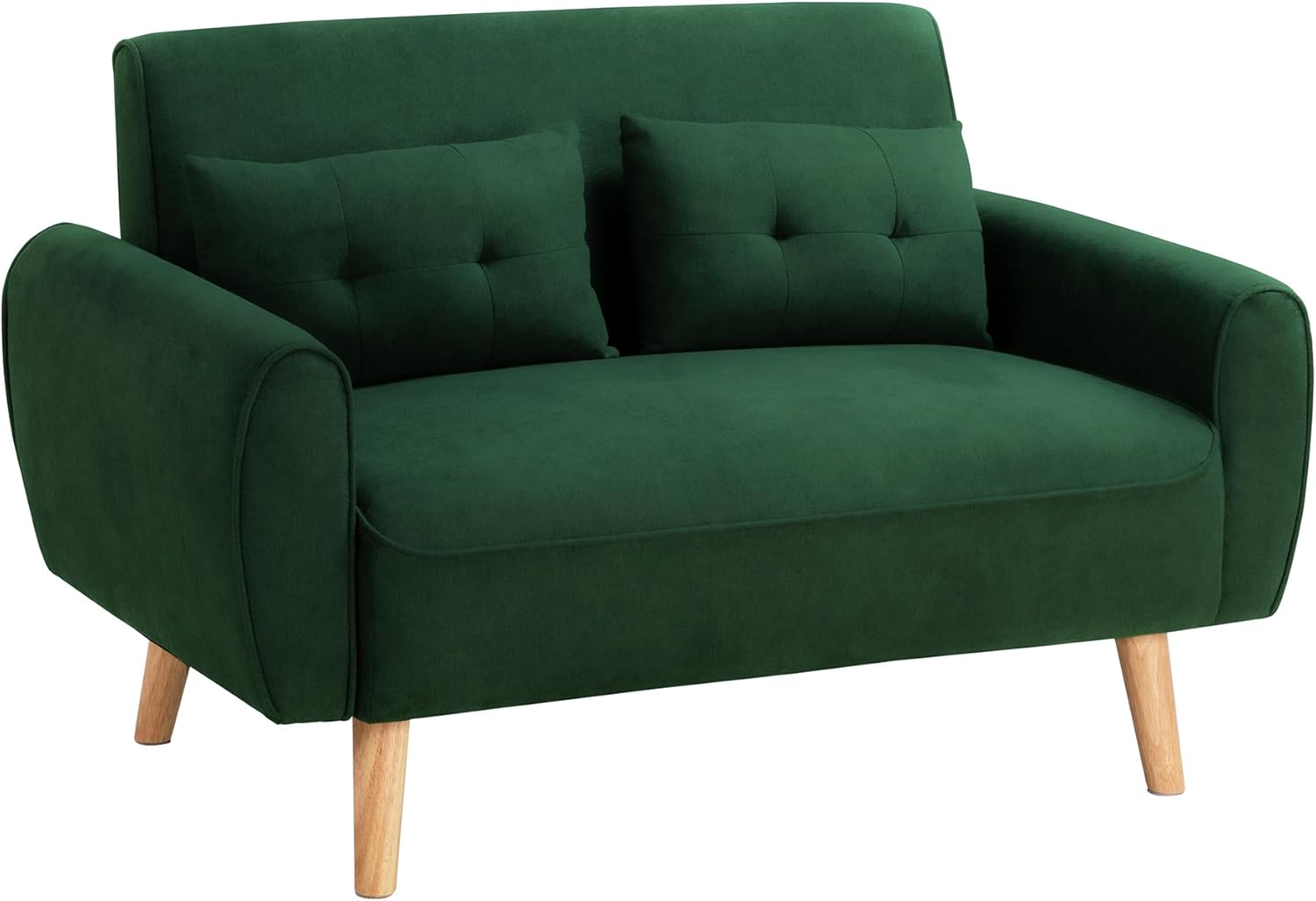 Shintenchi Small Modern Loveseat Couch Sofa, Mid Century Fabric Upholstered 2-Seat Sofa Couch Love Seats Furniture for Small Space,Living Room,Studio,Apartment with 2 Pillows,Green