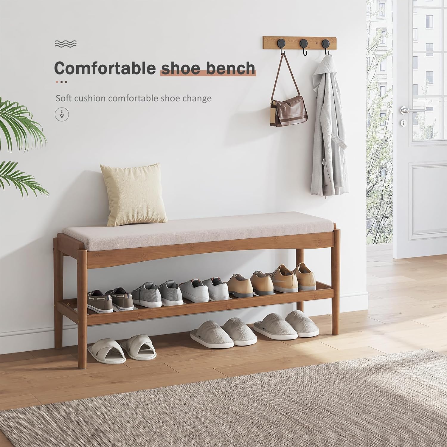 Comfortable Sitting Feeling:Entranceway Shoe Rack Thickened high elasticity memory sponge cushion, sit for a long time without collapsing, so that you get a comfortable sitting feeling