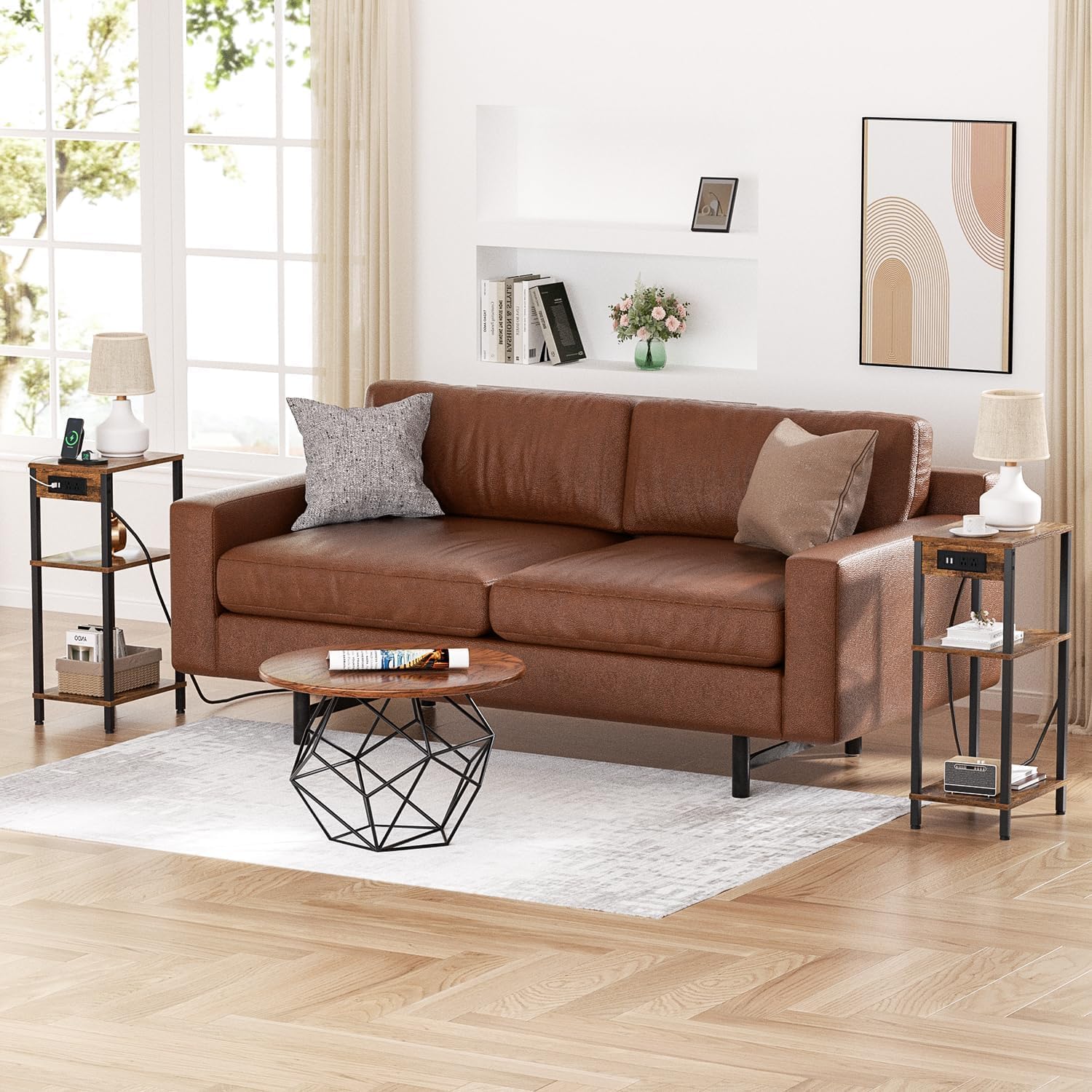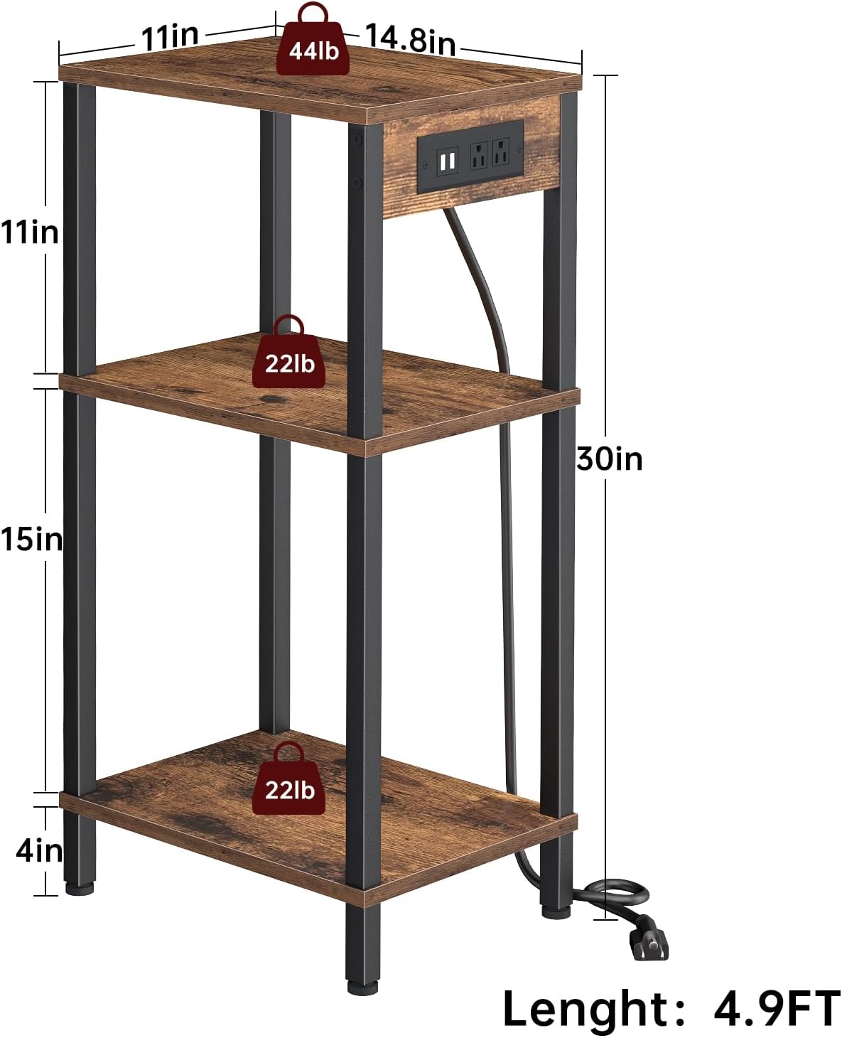 Side Table with Charging Station, Tall End Tables Living Room, 30 Inch Skinny Night Stand with Storage, Small Bedside Tables for Bedroom, Office, Dorm, Hallway, Rustic Brown