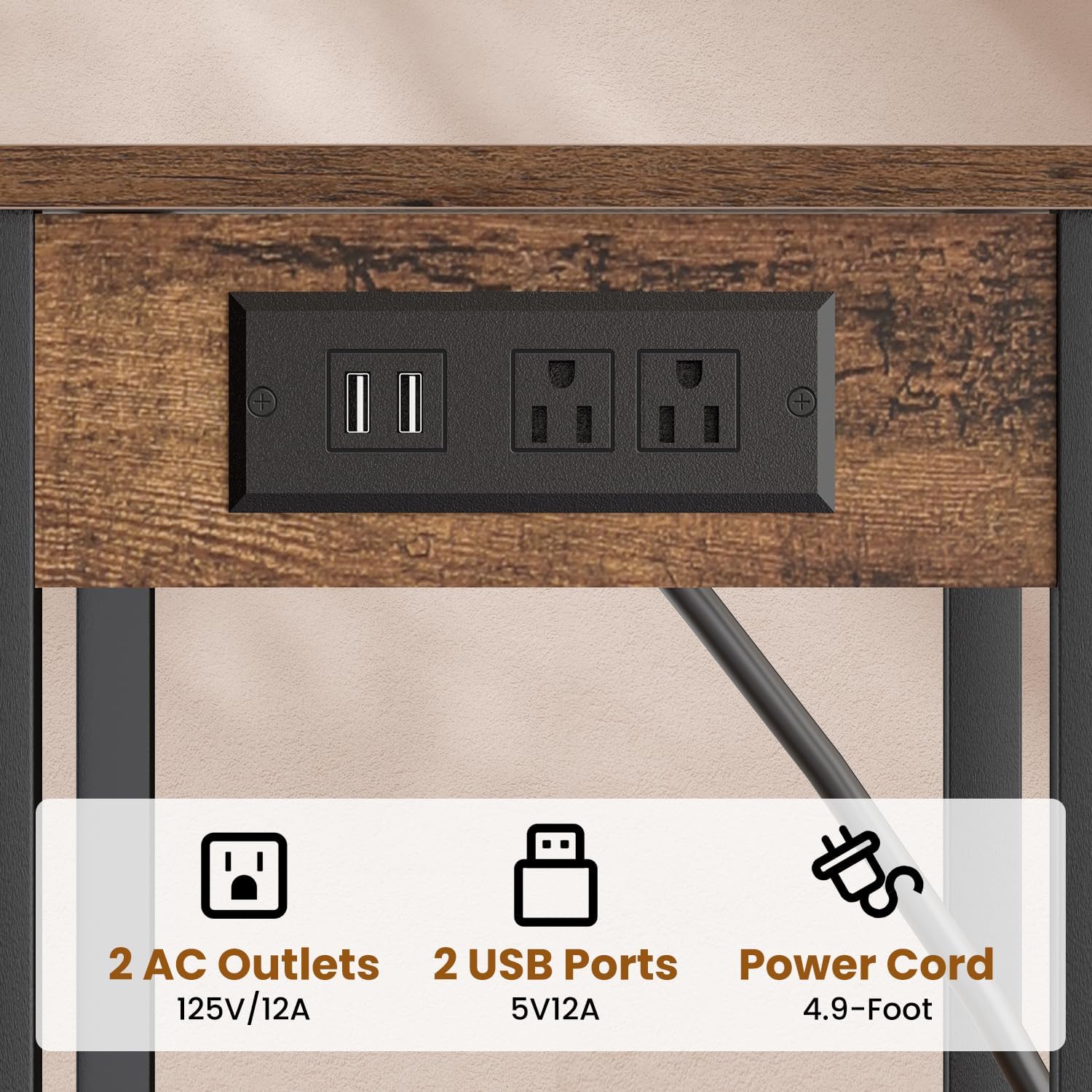 The side table comes with 2 AC outlets, 2 USB ports, to meet the needs of your various electrical appliances, the electrical cord is 4.9 ft long, enough to keep you away from wall corner where the home power outlet located.