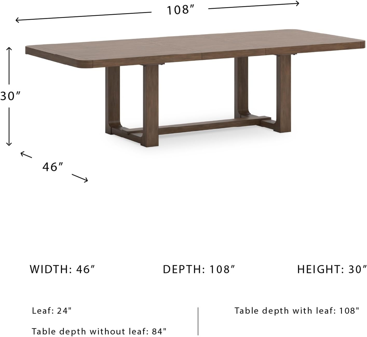 VERSATILE USE: Measures 46″ W x 108″ D x 30″ H with leaf and 84″ D without it. Great for an eat-in kitchen, breakfast nook or dinner area