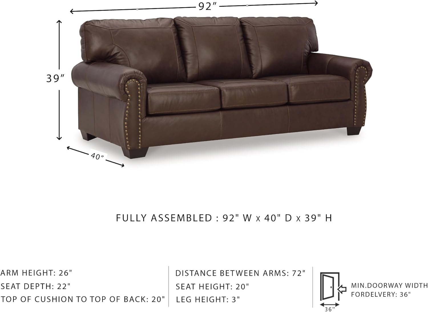 Signature Design by Ashley Colleton Classic Leather Match Sofa with Nailheads, Dark Brown