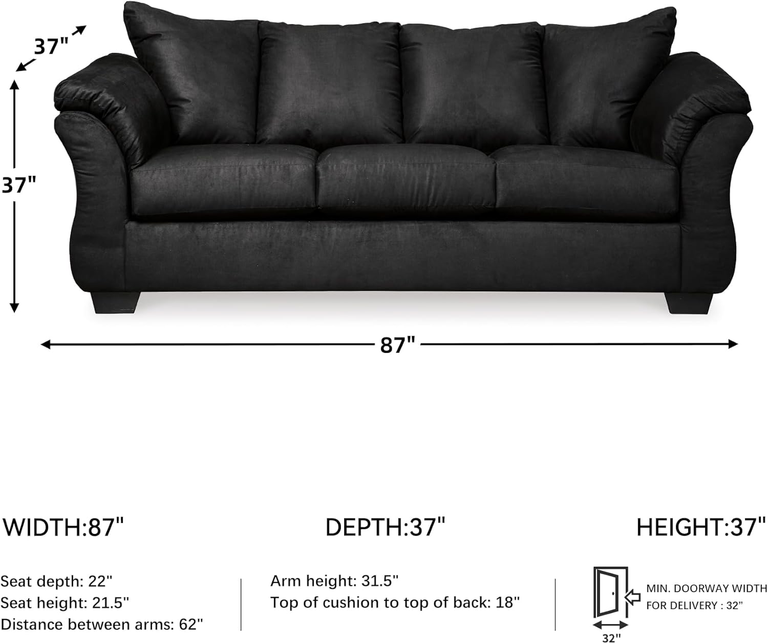 Signature Design by Ashley Darcy Classic Contemporary Sofa, Black