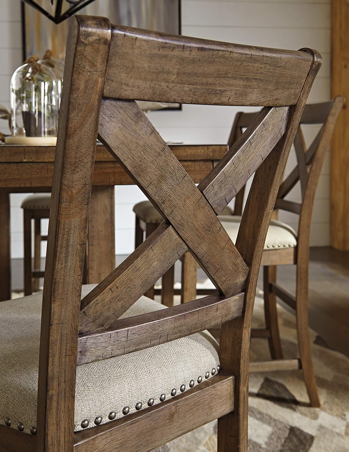 Signature Design by Ashley Moriville Rustic Farmhouse 24.5″ Upholstered Barstool, 2 Count, Beige & Brown