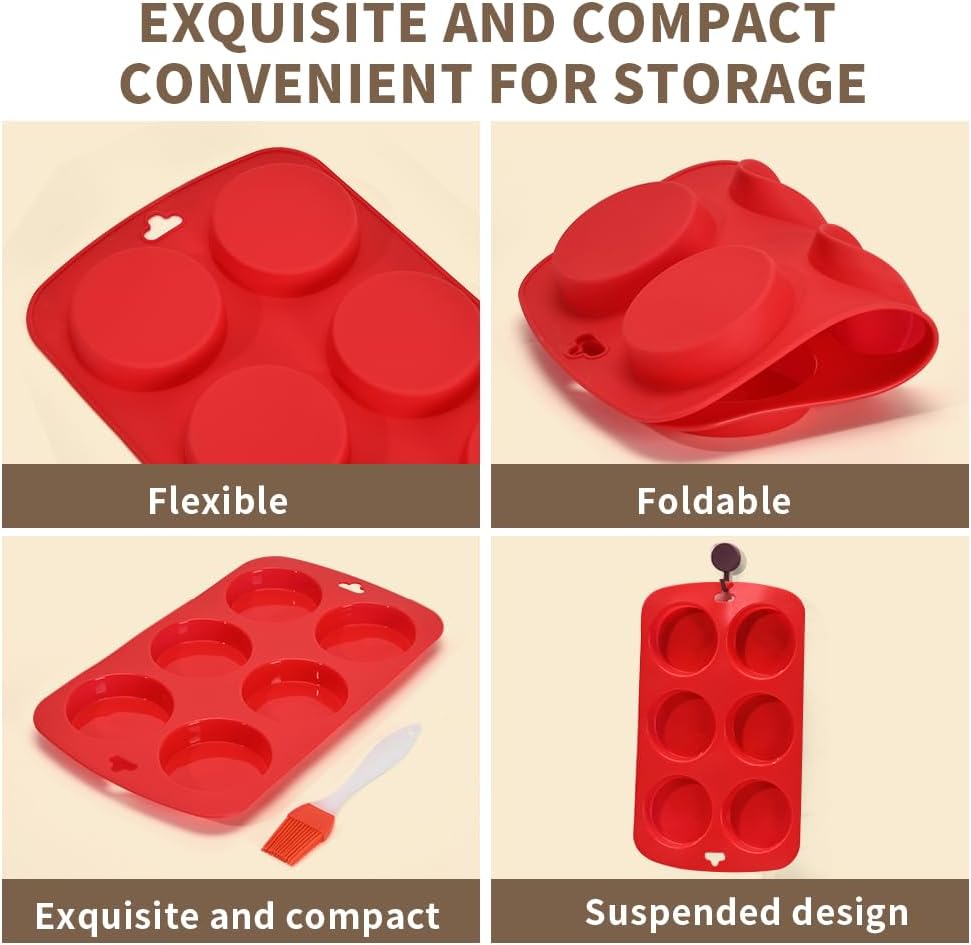 Multi Funcations: Silicone Muffin Top Pan,Great for baking Whoopie Pies, Egg Muffins, Sandwiches, Muffin tops, Cakes, Tart, Bread, Cheesecakes, Hamburger bun, Custard, Soaps, Egg bites
