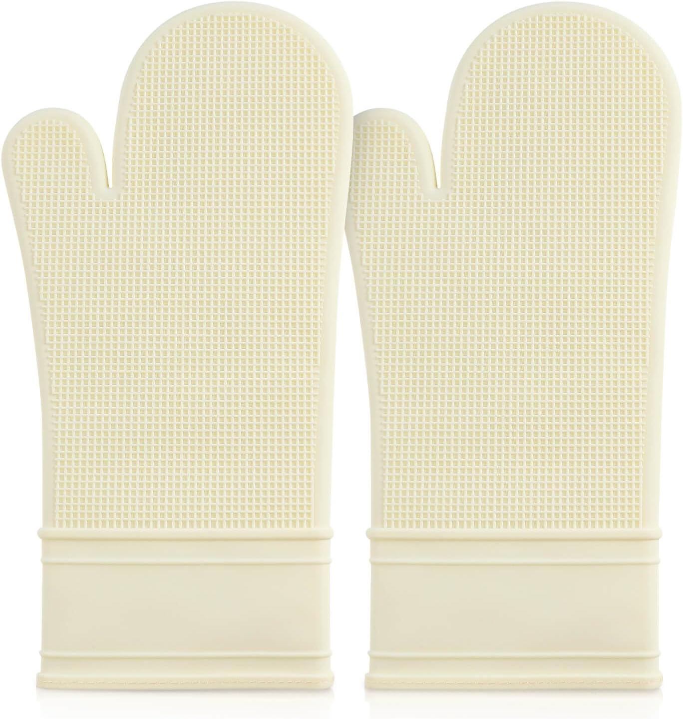 Silicone Oven Mitt Set 7″x14″, Extra Long Oven Mitts Heat Resistant Non-Slip Quilted Liner Kitch Oven Gloves for BBQ, Baking, Cooking, Beige
