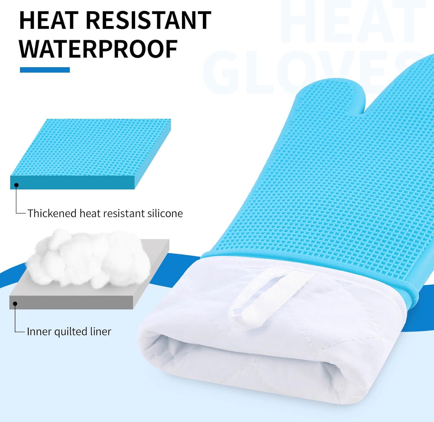 Heat Resitant Silicone: The soft silicone mitts are zero heat transfer no matter how hot the item, but can support heat resistant up to 500℉ to safely shield hands from the heat while handling hot pots, baking sheets, or the occasional grill.
