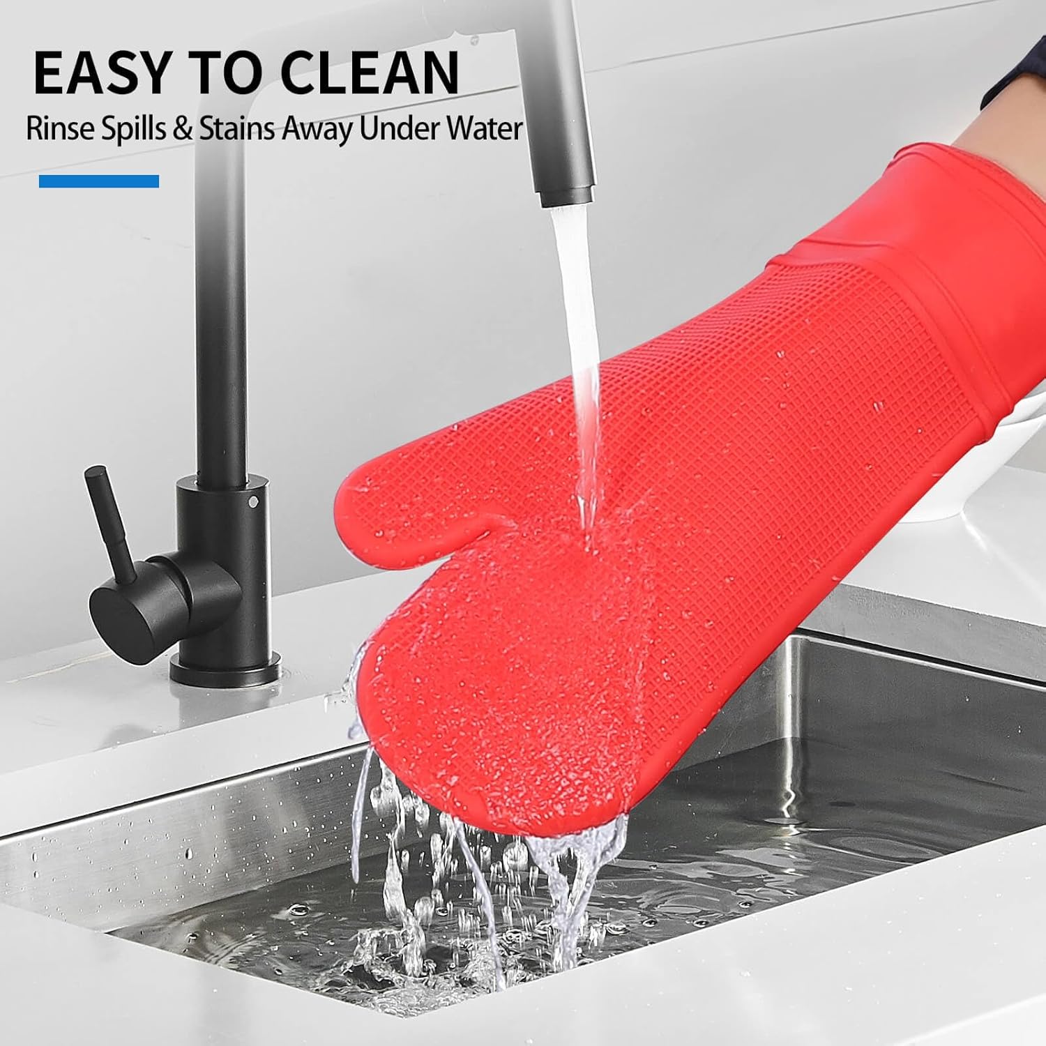 Easy to Clean: The integrated design silicone mitt gloves make spills rinsed away under water easily, and don’t let the hot liquids or moisture soak through unlike other cloth fabric gloves.
