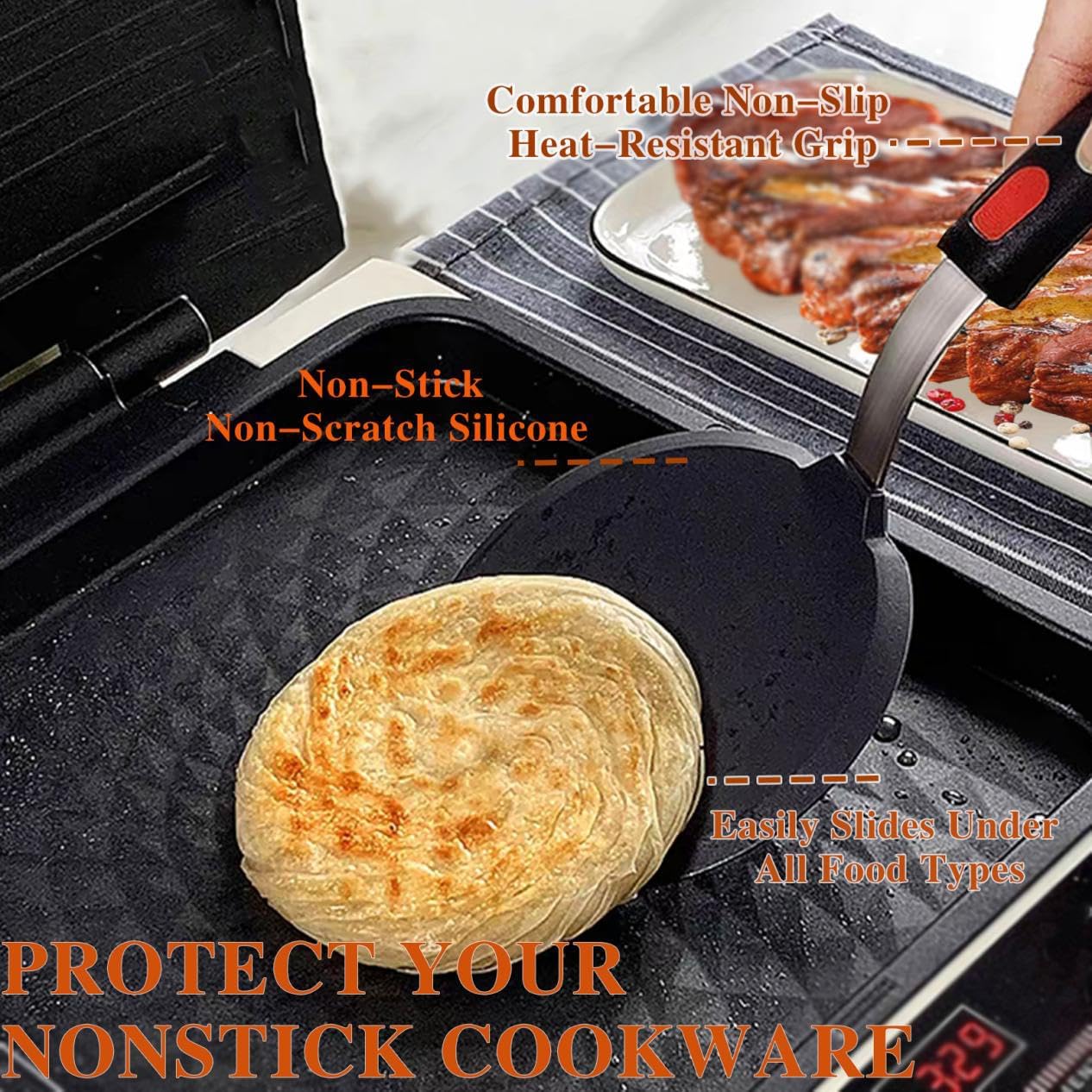 600°F Heat Resistant Silicone Spatulas: One of the advantages of using a silicone spatula turner is its high heat resistance. Silicone can withstand high temperatures, often up to 600°F, which makes it suitable for use with hot pans and grills. This heat resistance ensures that the spatula turner won’t melt or warp while cooking.