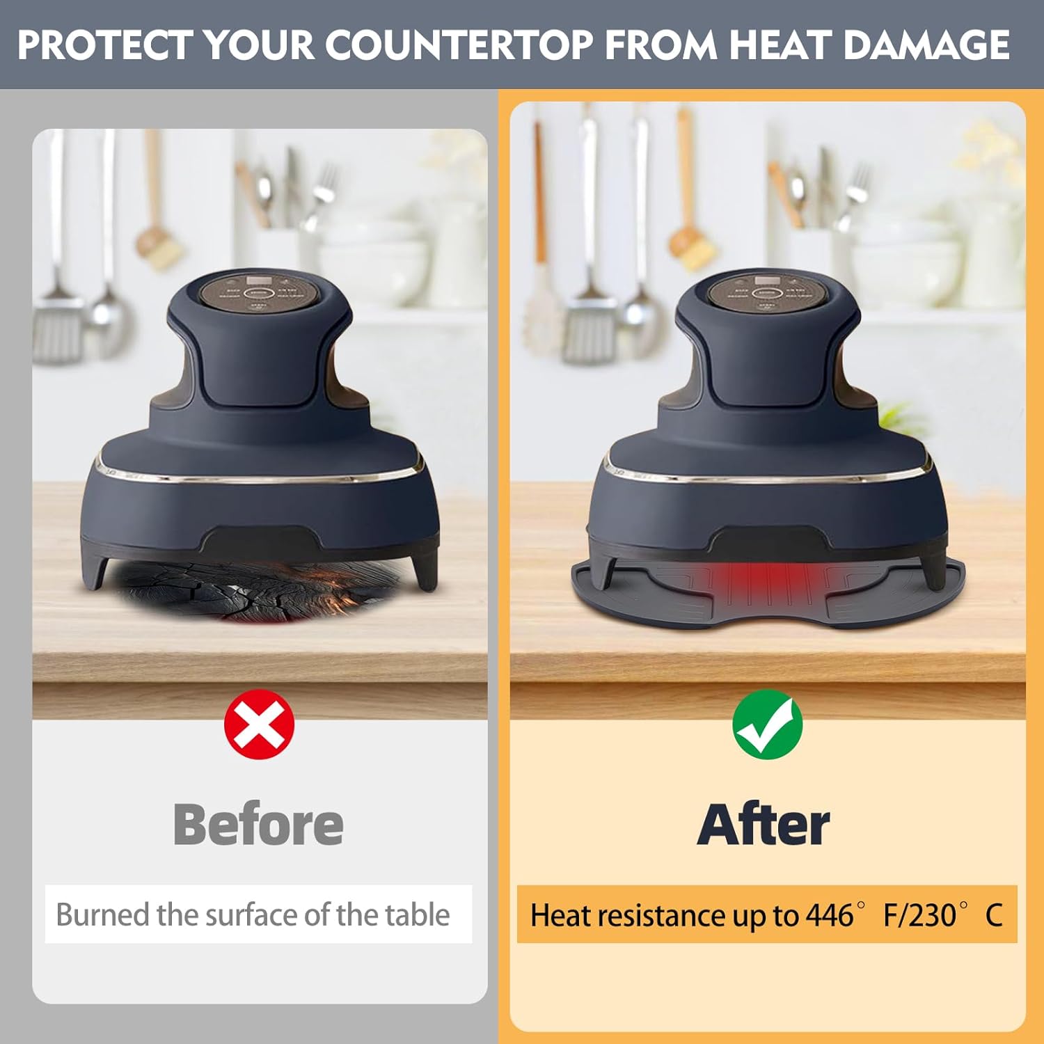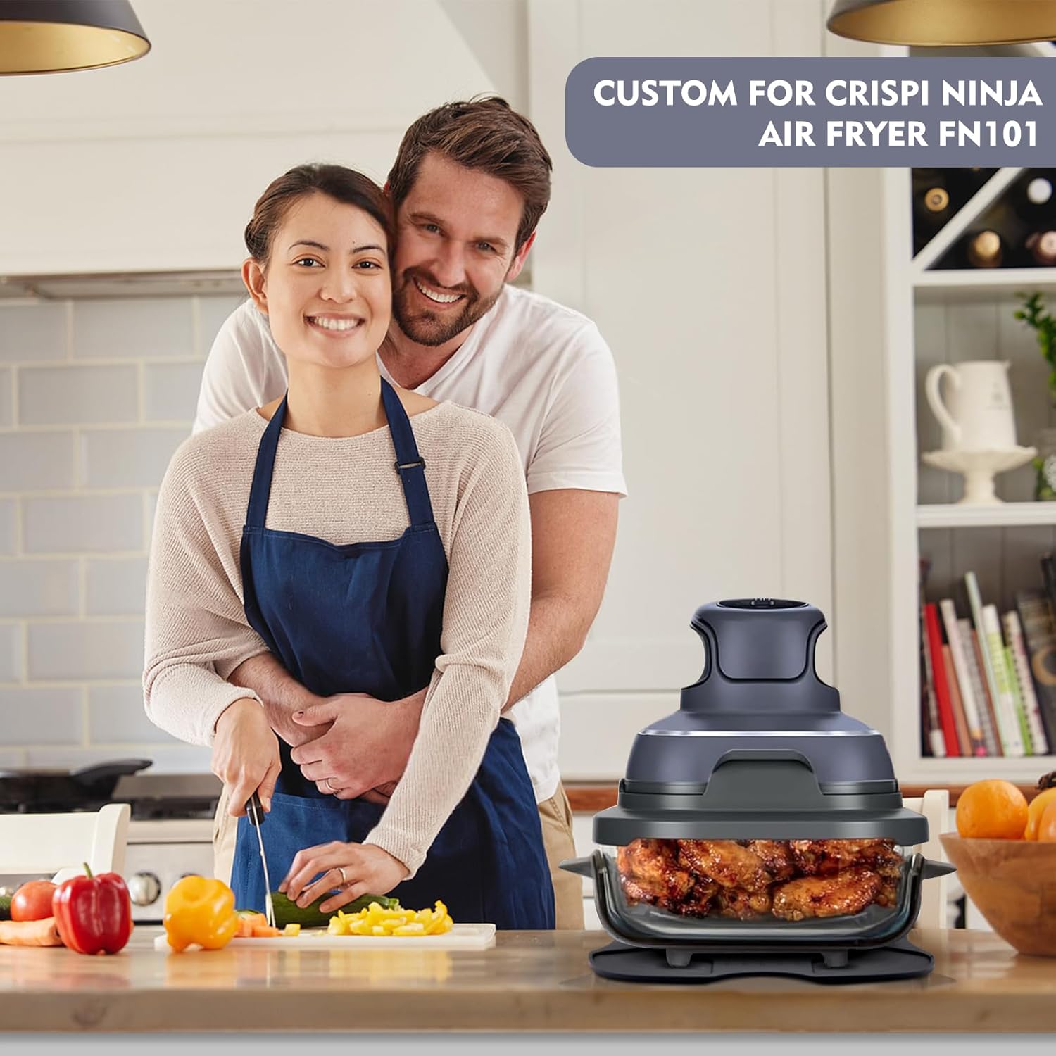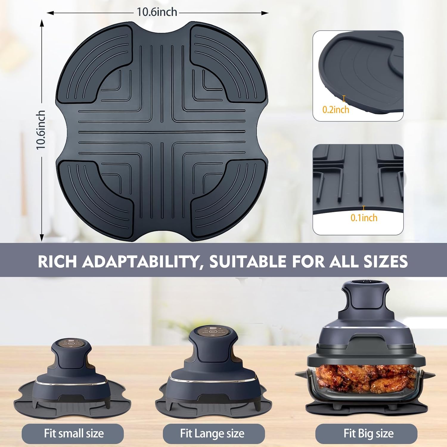 [Perfectly Compatible with Ninja Crispi Air Fryer FN101]: Engineered with 10.6 x 10.6-inch dimensions to perfectly compatible with Ninja Crispi Air Fryer PowerPod and FN101 models. The four-corner grooves catch oil splashes and liquids during cooling, while the non-slip textured base ensures stability on smooth or uneven surfaces. Raised edges shield countertops from direct heat exposure, making it a must-have for air fryer enthusiasts.