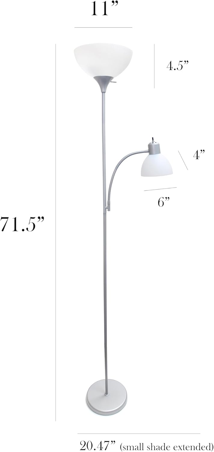 Simple Designs LF2000-SLV Mother-Daughter Floor Lamp with Reading Light, Silver
