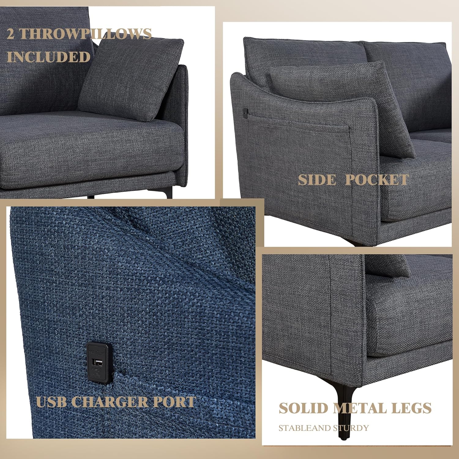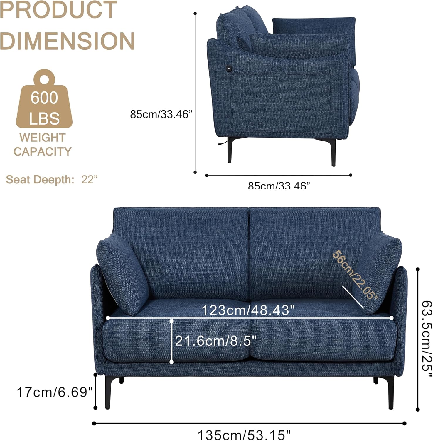 Simple Style Modern Loveseat Couch Sofa with USB Charge Port, 2 Pillows,Metel Legs for Primary Living Space, Bed Room, Office (Dark Blue)