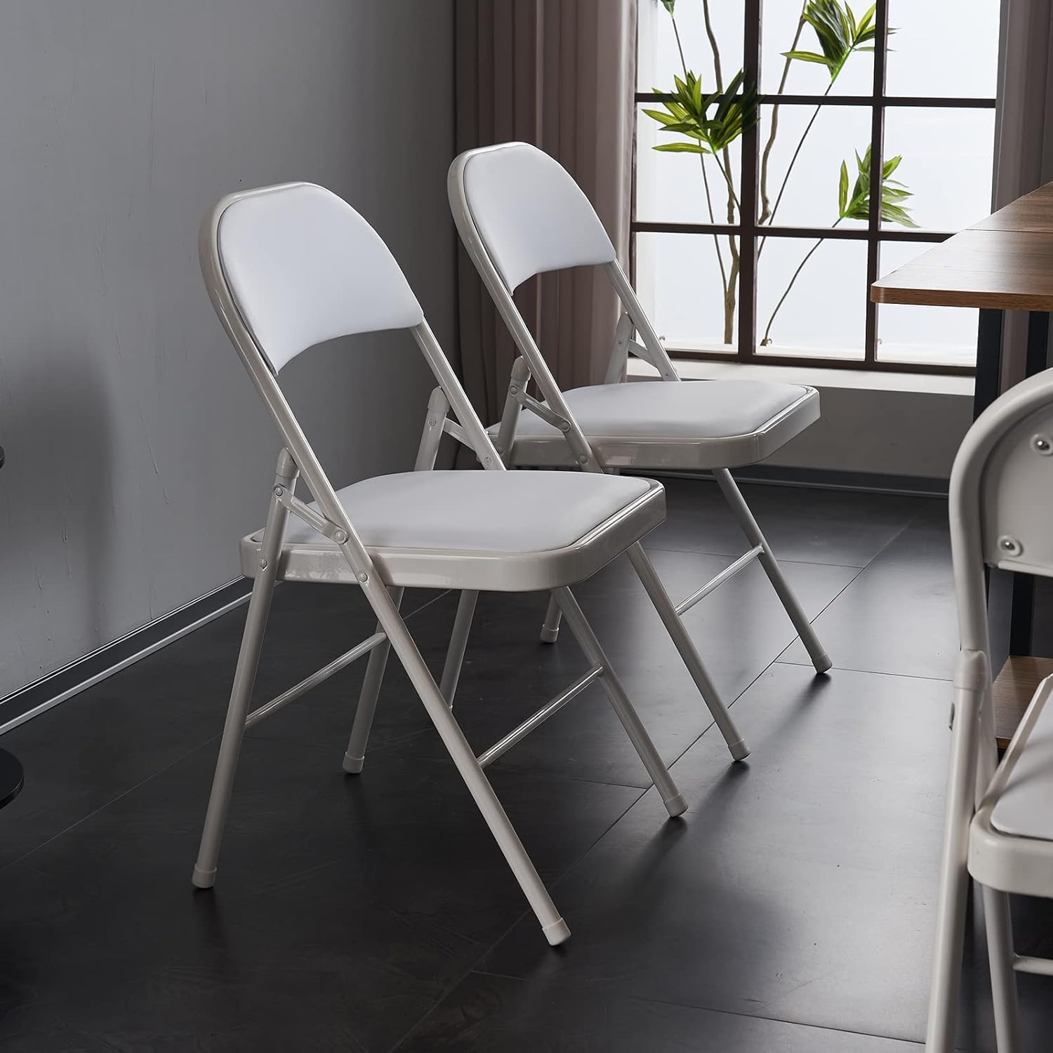 [Comfortable and Stylish] – Our thickening padded folding chairs feature high-quality PU leather and thick foam padding, providing comfortable seating for work, study, or events. The sleek metal frame adds a touch of elegance to any setting.