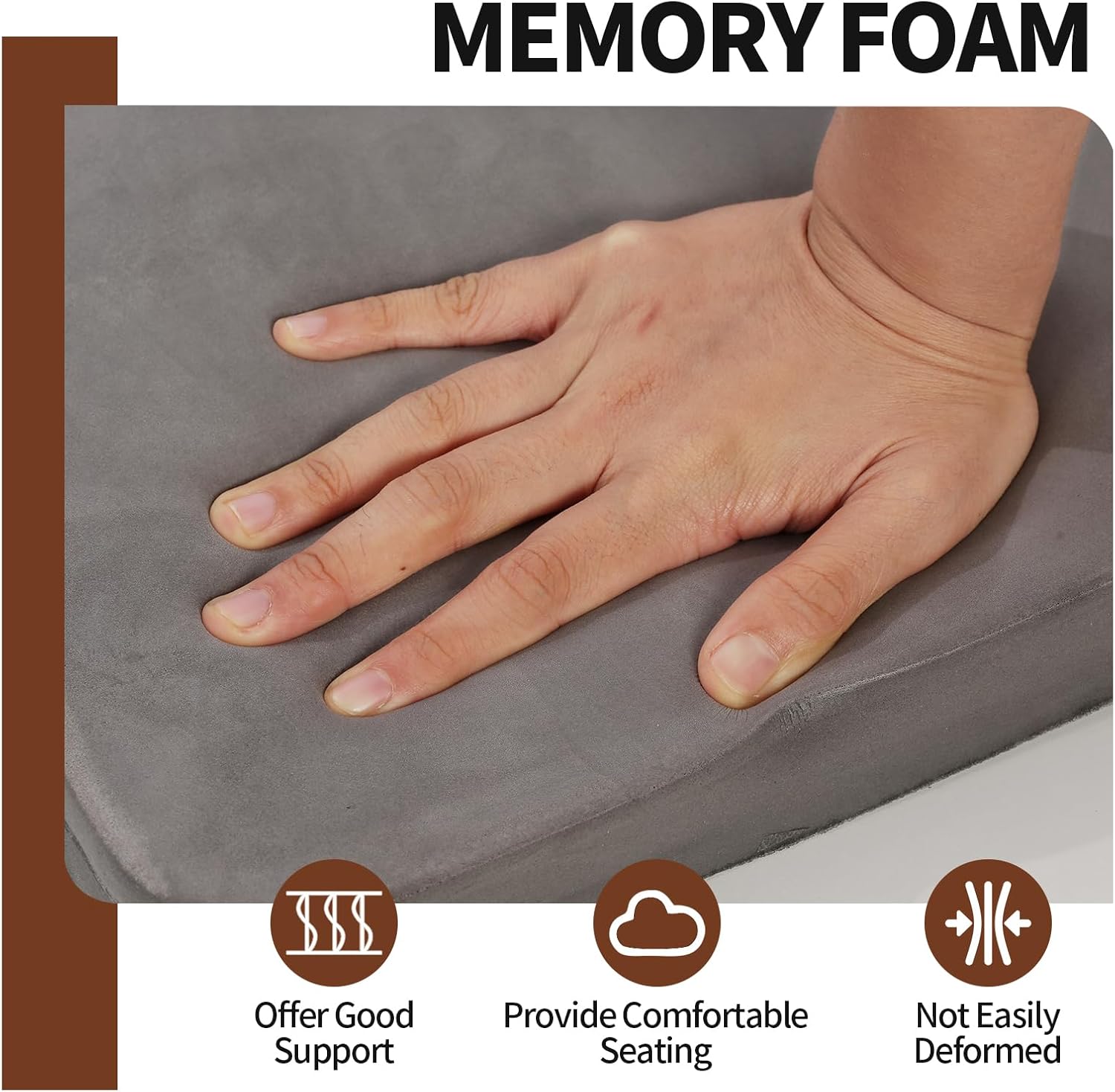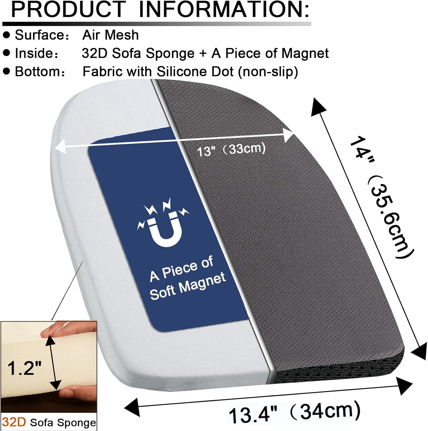 【PRODUCT DETAILS 】14″L x 13.4″W x 1.3″H, includ 2 counts U-shape seat cushions, Surface: Polyester Velvet fabric, Inside:32D Sofa Foam + a piece of magnet, Bottom: Silicone Anti-Slip Fabric.
