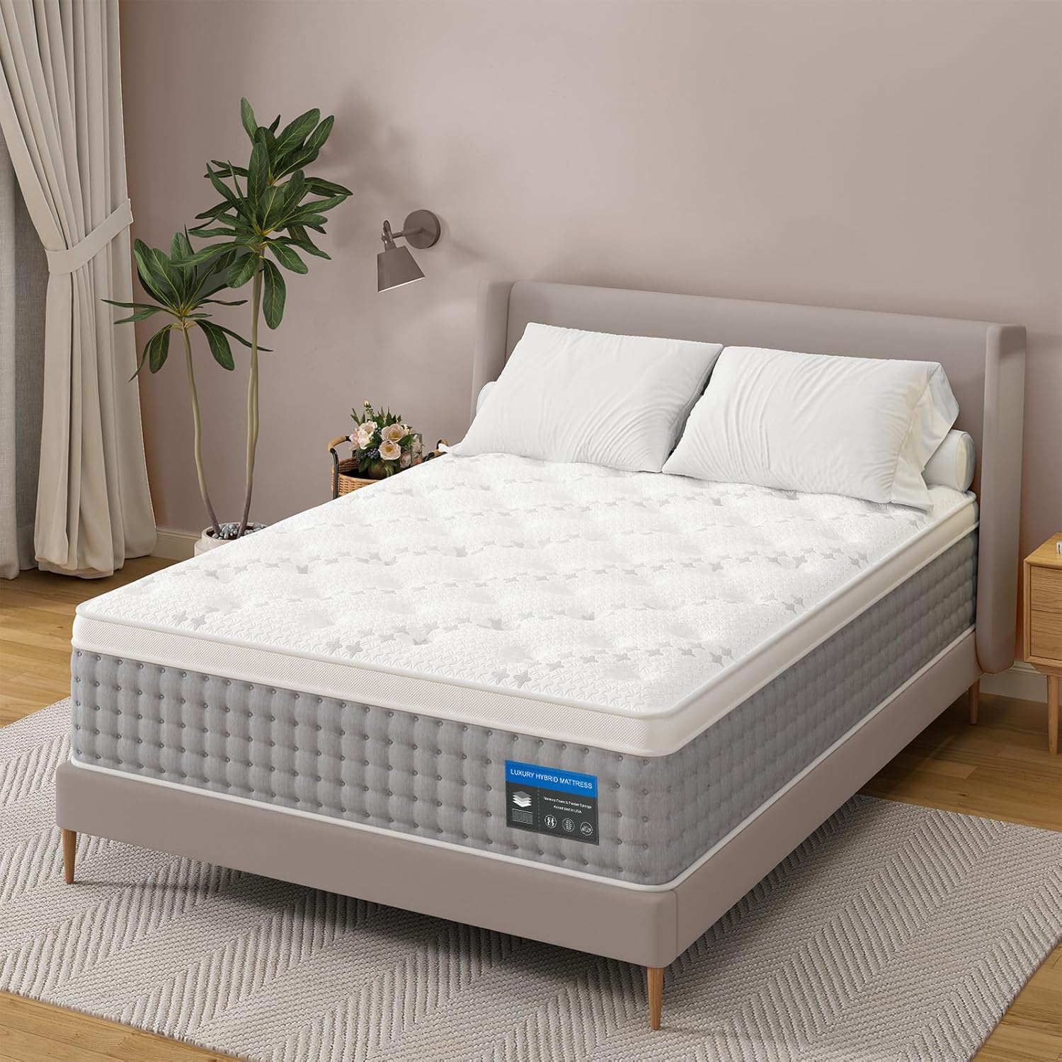 Sleepmax Queen Mattress 14 Inch – Hotel-Collection Hybrid Mattress Extra Lumbar & Hip Support – Deep Sleep Bed in a Box Pain Relief – Fiberglass-Free, CertiPUR-US Certified, 365-Night Trial