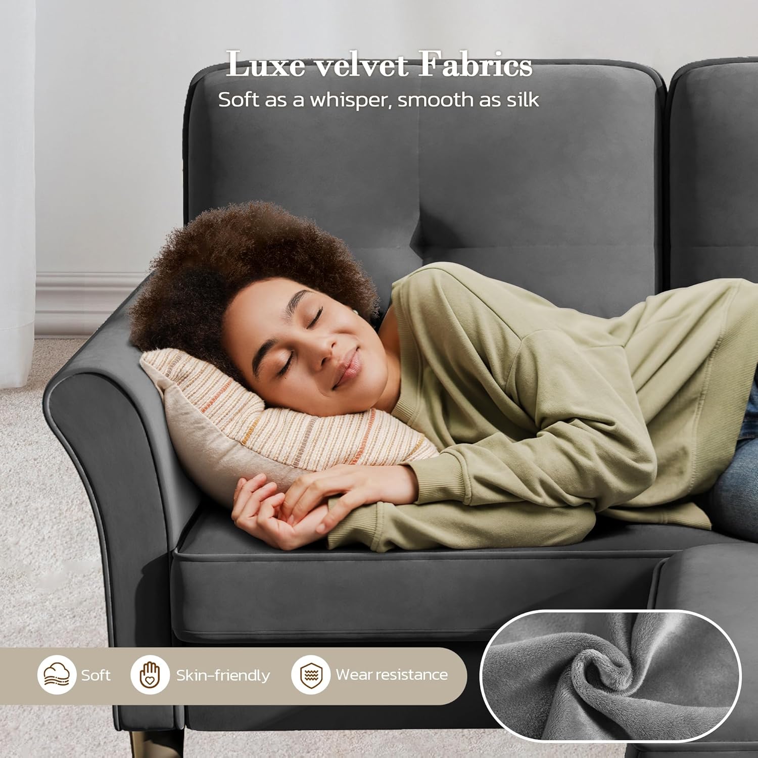 83″ COMPACT SIZE, MODERN STYLE FOR ANY SPACE Wrapped in Cozy Velvet Making your living room cozier, stylish and inviting