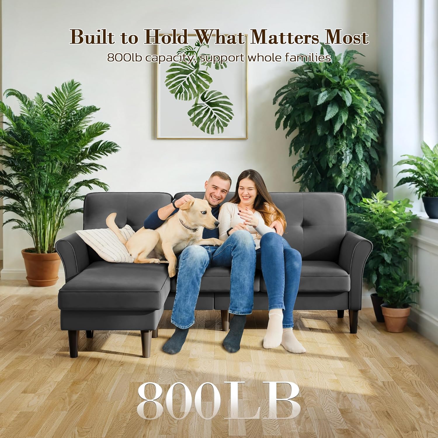 SOFT VELVET FABRIC, SOLID DURABILITY – Let the Welzona velvet sofa sectional wrap you in plush softness. Built with a sturdy wood frame and an 800 lb weight capacity, this 3 seater couch is a stylish and inviting option among sectional sofas for living room, small sectional couches for living room, and everyday sofas & couches. The smooth velvet finish and neutral tone also make it an easy match as a cozy beige couch for apartment, bedroom, or office use.