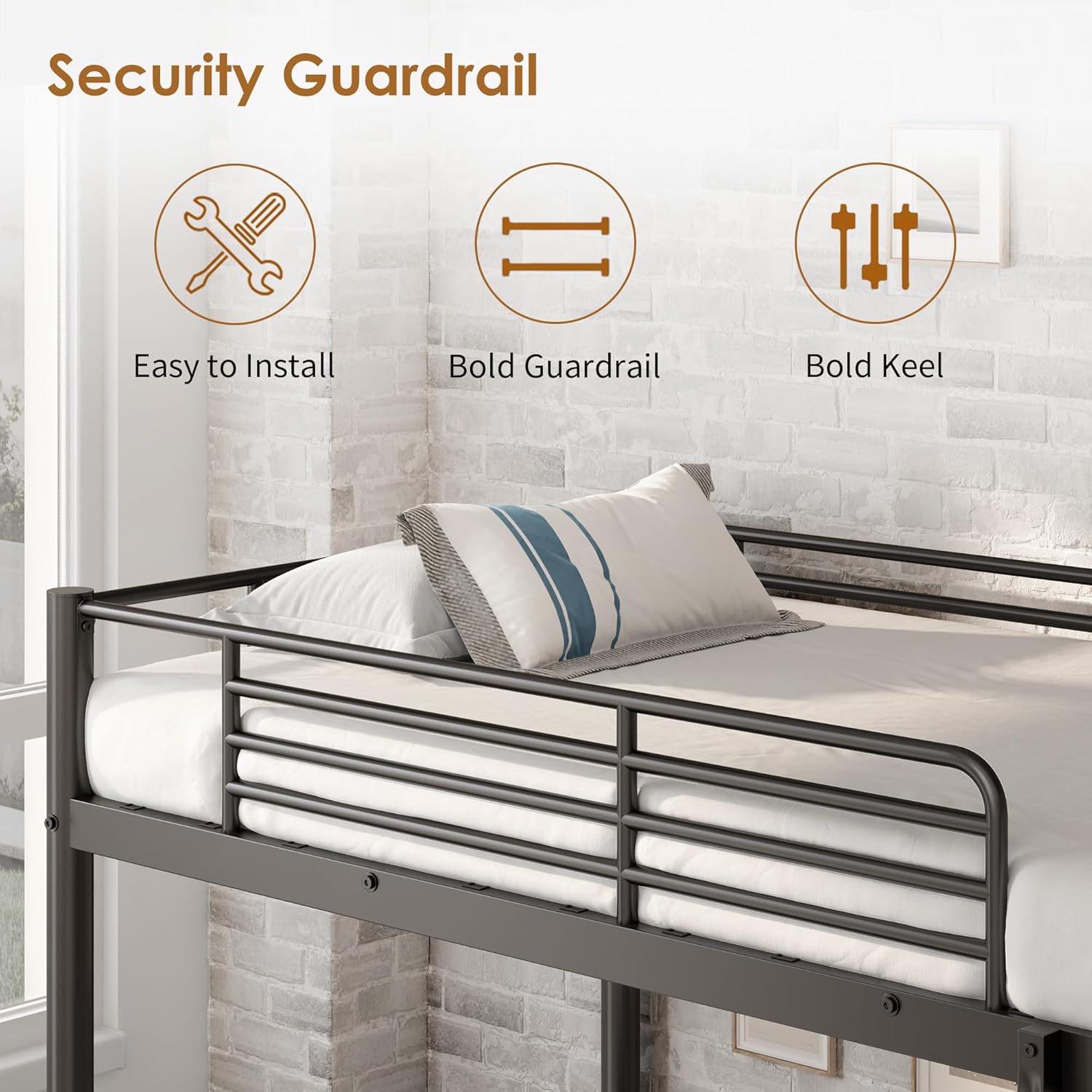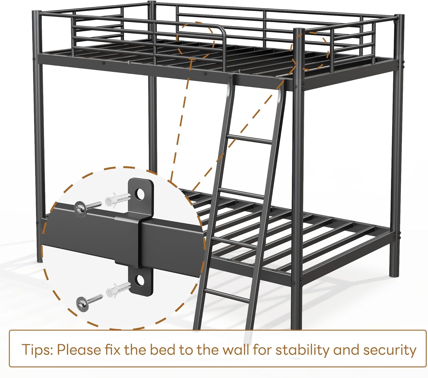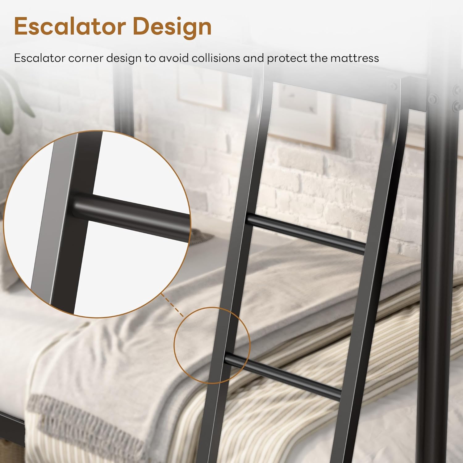 【Enhanced Safety Features】Includes an integrated ladder for easy top-bunk access and sturdy guardrails to prevent falls, fostering a secure sleep environment.