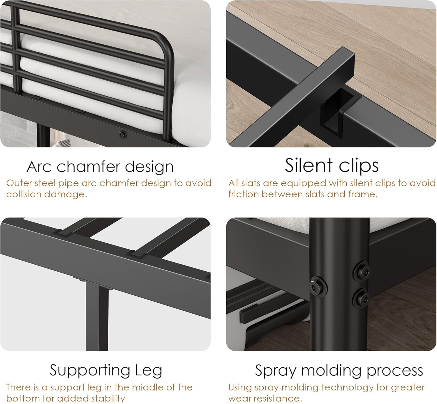 【No Box Spring Needed】Features heavy-duty metal slats that offer excellent mattress support, eliminating the need for a box spring while preventing sliding.
