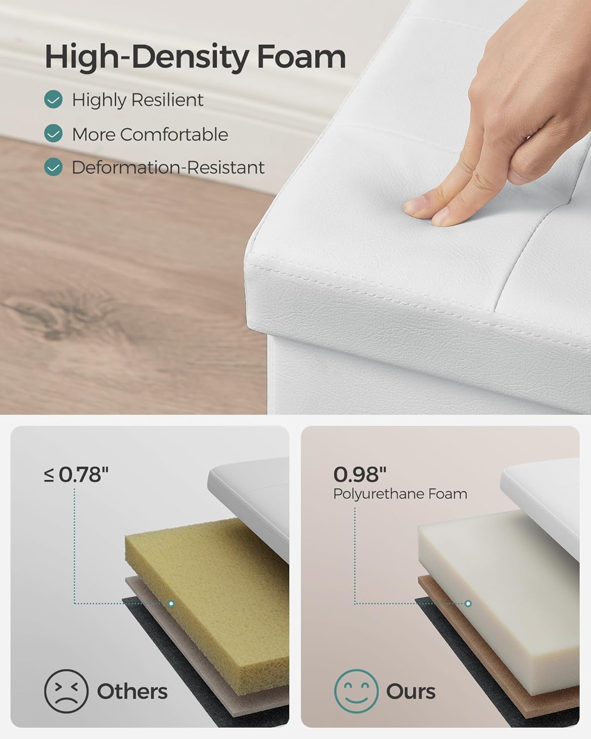 【QUICK ASSEMBLY, EASY FOLDAWAY】This storage ottoman from the SONGMICS MAZIE Collection has a foldable design that allows quick setup in seconds by simply inserting the bottom panel. Easily fold and store it under the bed or in a closet when not in use
